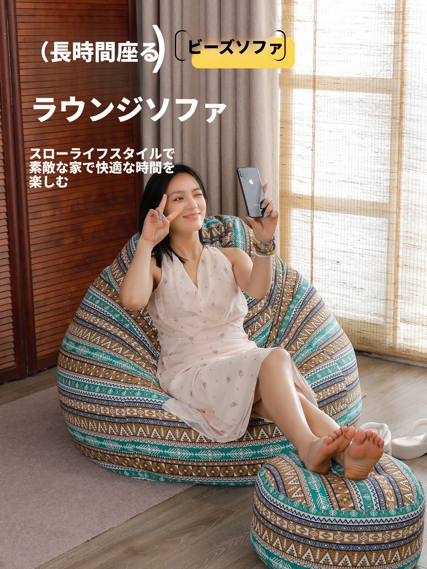 時を超えた布アートのリラックスソファ!寝転んでも心地よい、寝室や畳スペースにぴったりなビーンバッグ。あなたのくつろぎの時間をもっと特別に!