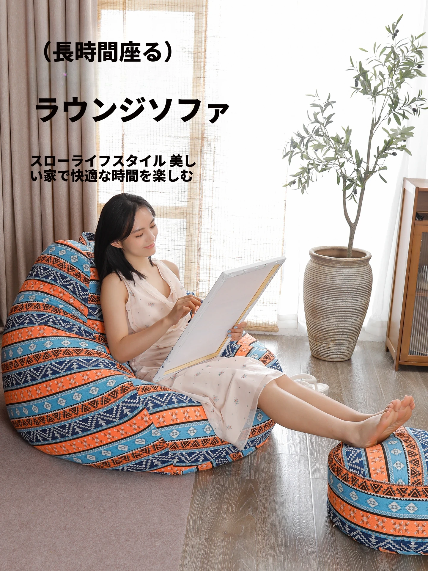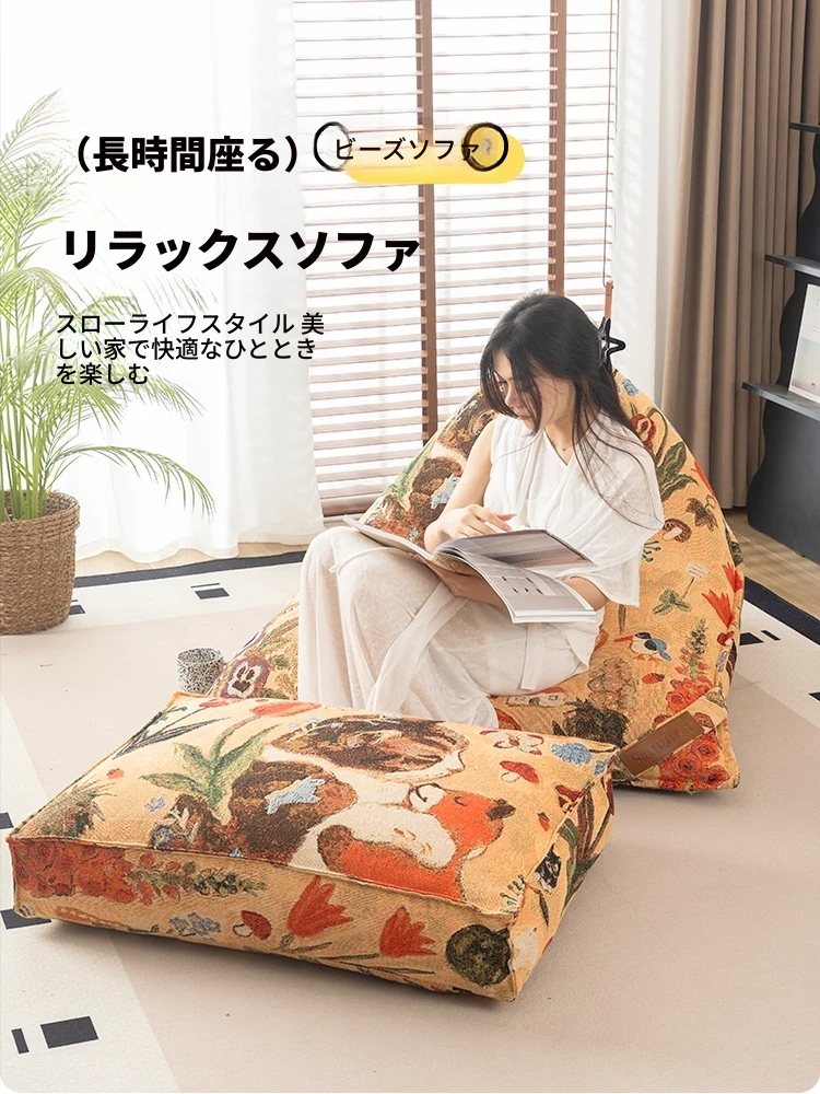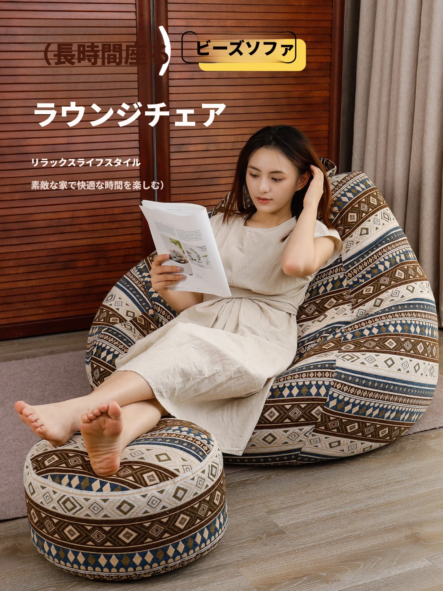 リラックス豆袋ソファ - 一人用、寝室やリビング、バルコニーに最適!小さなスペースでもぴったりフィットする、タタミスタイルの快適なリラックスチェア。あなたのくつろぎタイムをもっと特別に!