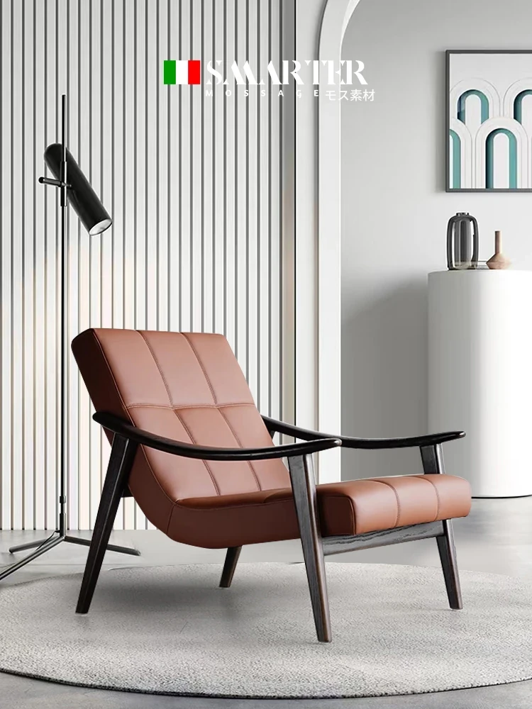 イタリアンミニマリストデザインのレザーソファチェア!洗える布張りでレトロな一人掛けソファ。リビングやバルコニーにぴったりなリラックスチェア!快適さとスタイルを両立した贅沢な選択。