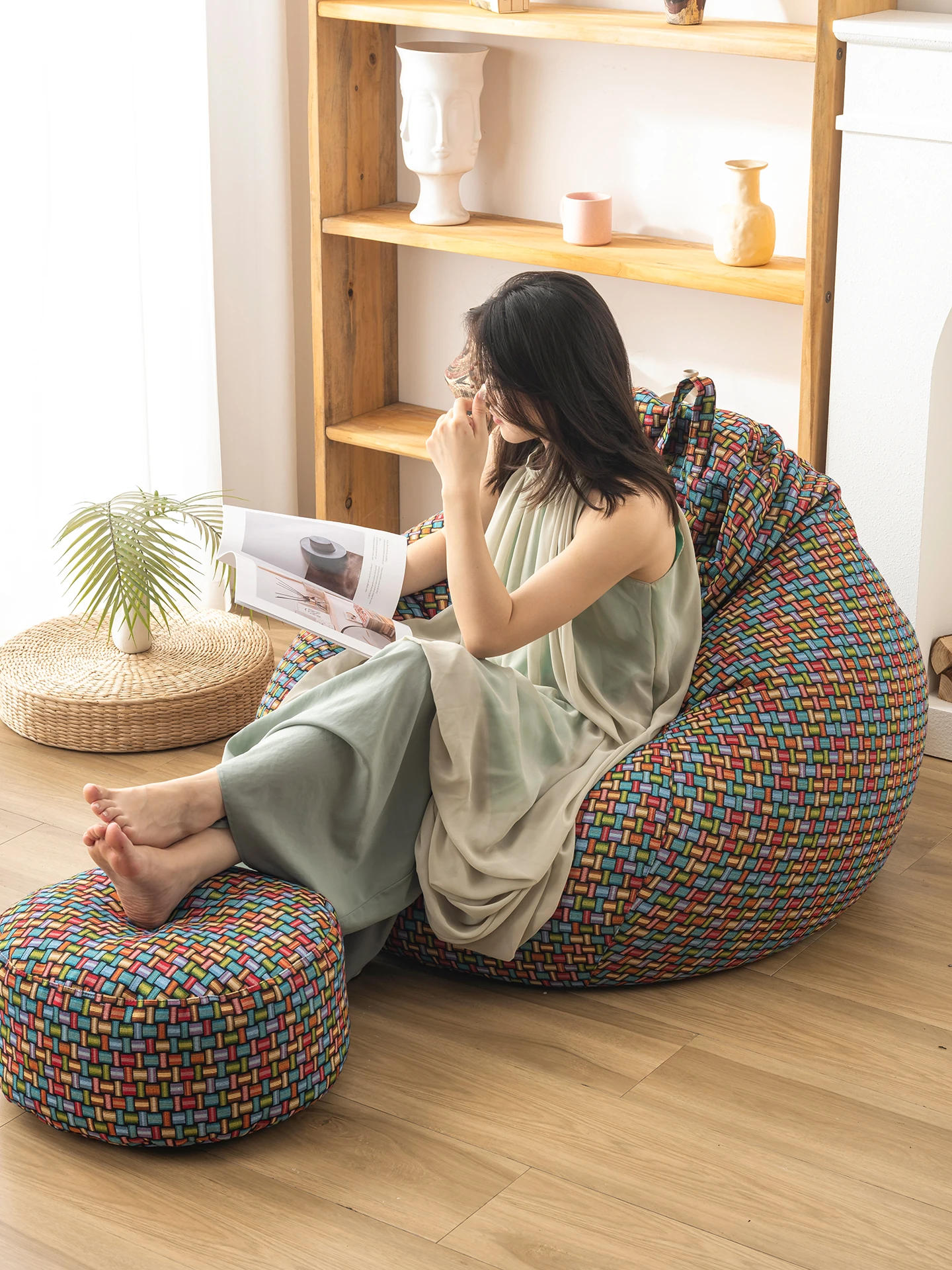 時空と布のストライプ民族風ダイヤモンドチェックのリラックスソファ、一人用の寝室やリビングにぴったりな豆袋型!快適さとスタイルを兼ね備えたあなたのくつろぎスペースに最適です。