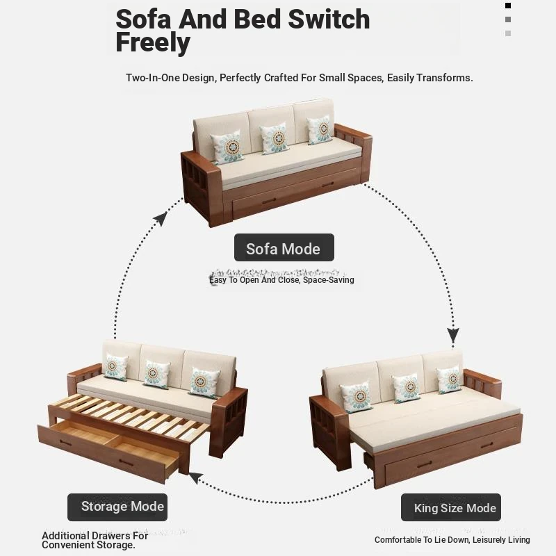 [Free Shipping to Hong Kong] Multifunctional Solid Wood Folding Sofa Bed for Small Spaces – Perfect for Living Rooms, Transformable into a Double or Single Bed for Ultimate Comfort and Style!