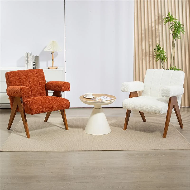 Creamy Minimalist Solid Wood Modern Single Sofa Chair - Cozy Lounge Chair for Living Room, Designer's Choice for Airbnb, Featuring Lambswool Fabric Perfect for Balcony and Socializing.