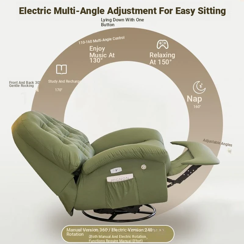 2025 New Swivel Rocking Chair: Comfortable Genuine Leather Single Sofa for Home Relaxation - Perfect for Leisure and Style