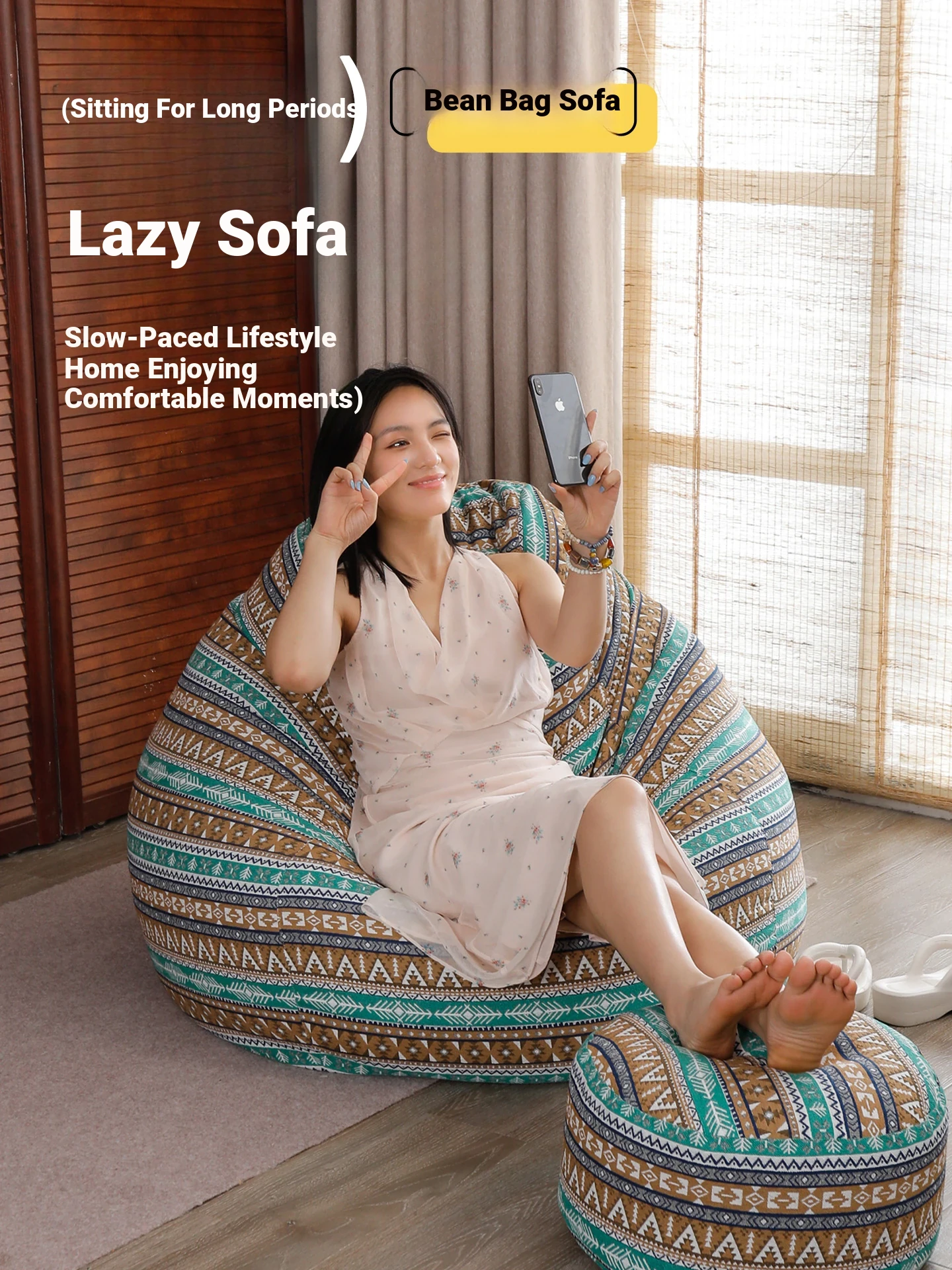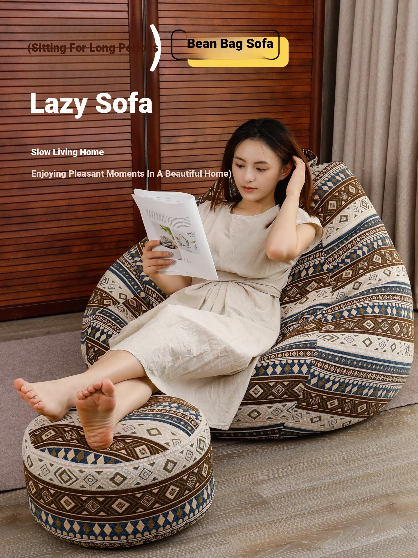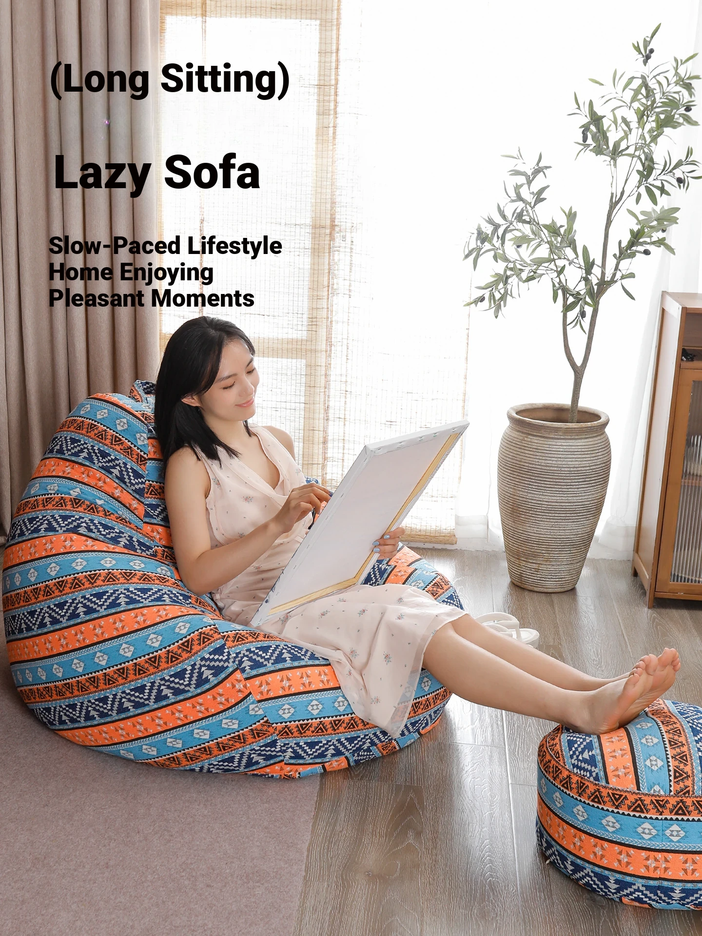 Time and Fabric Striped Ethnic Style Diamond Check Lazy Sofa Bean Bag Chair for Bedroom and Living Room - Perfect for Relaxation and Comfort!