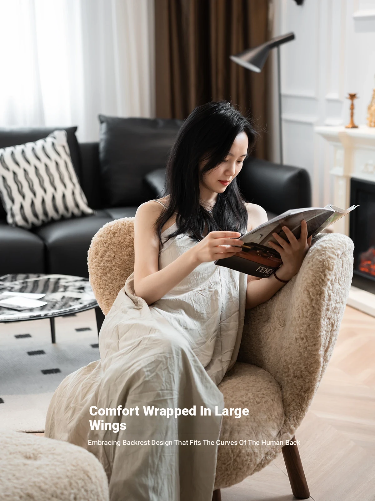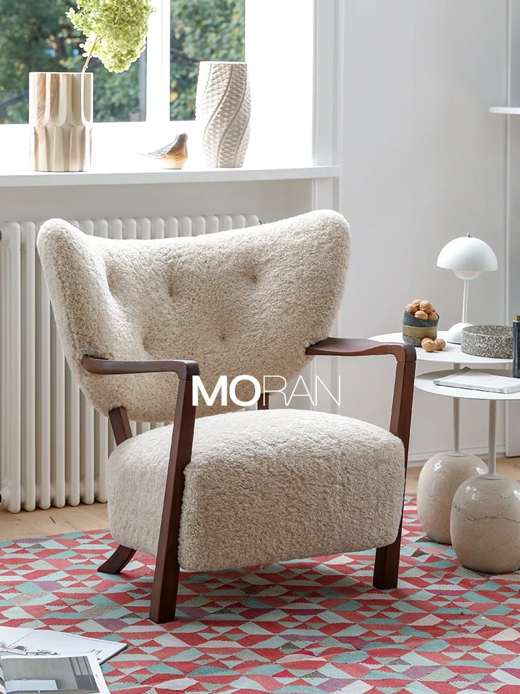 Nordic-Inspired Vintage Single Sofa Chair by MoRan - Crafted from North American Black Walnut and Luxurious Wool Lamb Fur Upholstery, Perfect for Stylish Living Spaces
