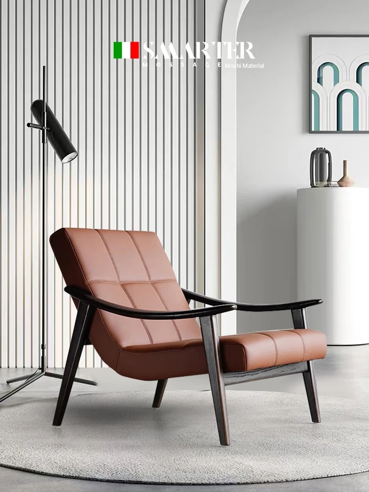 Italian Minimalist Leather Armchair - Removable and Washable Retro Fabric Single Sofa Chair for Living Room and Balcony - Perfect Lazy Chair for Relaxation