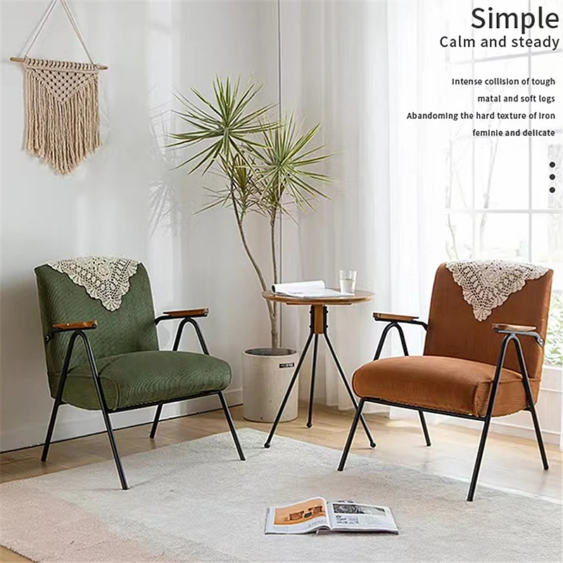 Vintage American Single Sofa Chair - Iron Frame, Ideal for Cozy Cafés and Guesthouses, Perfect for Nordic Style Relaxation and Reception Areas.