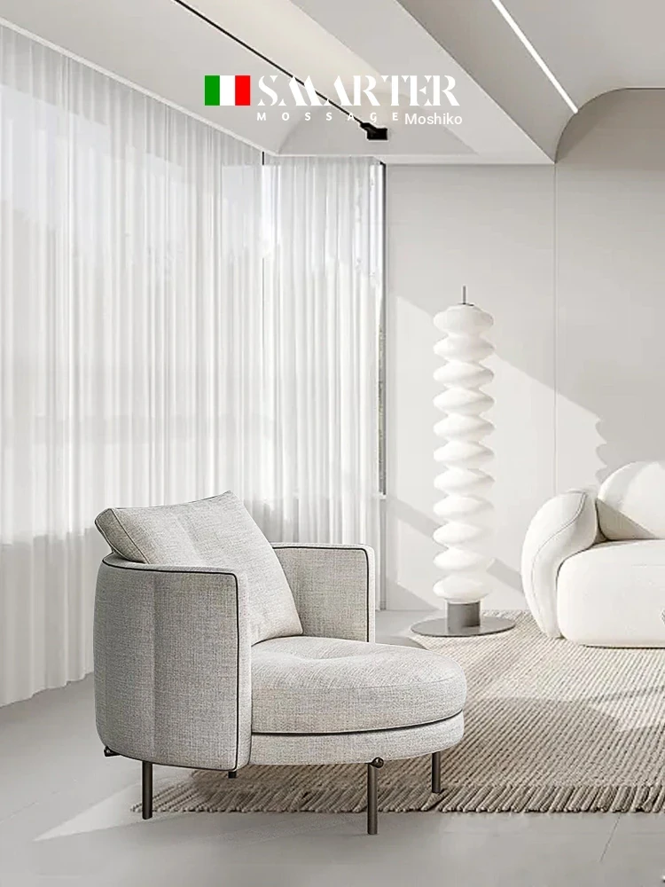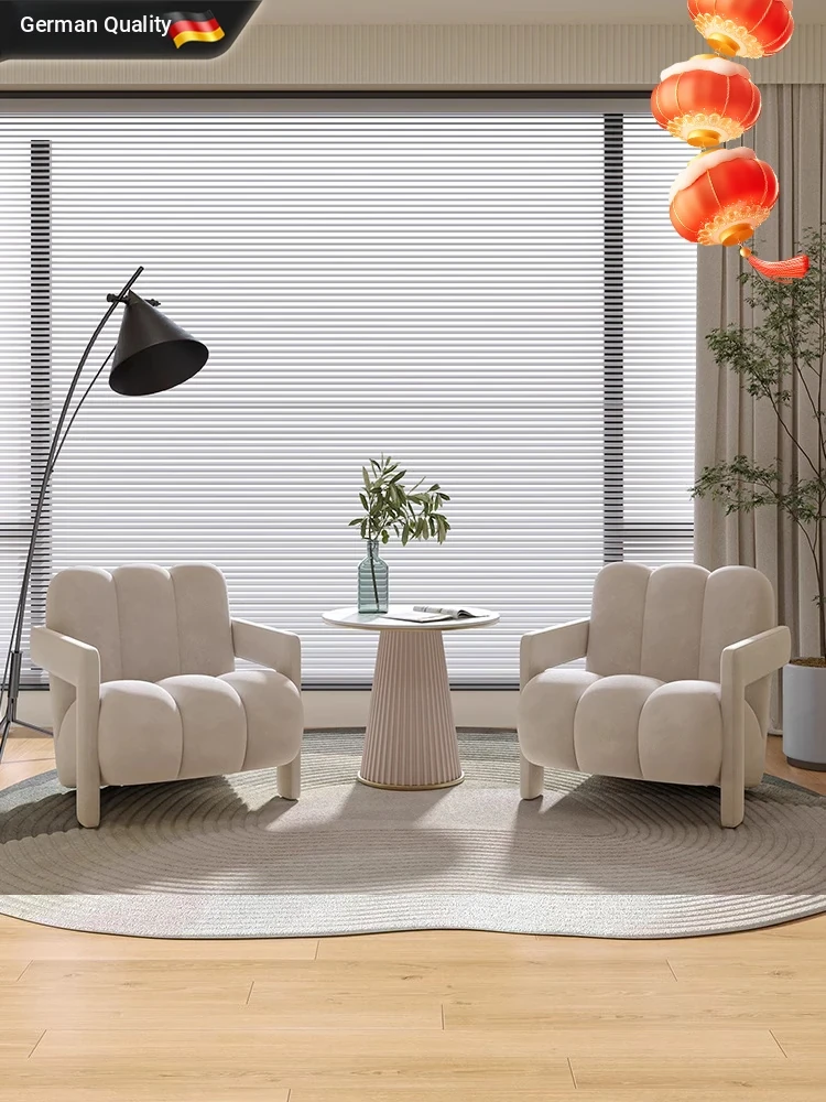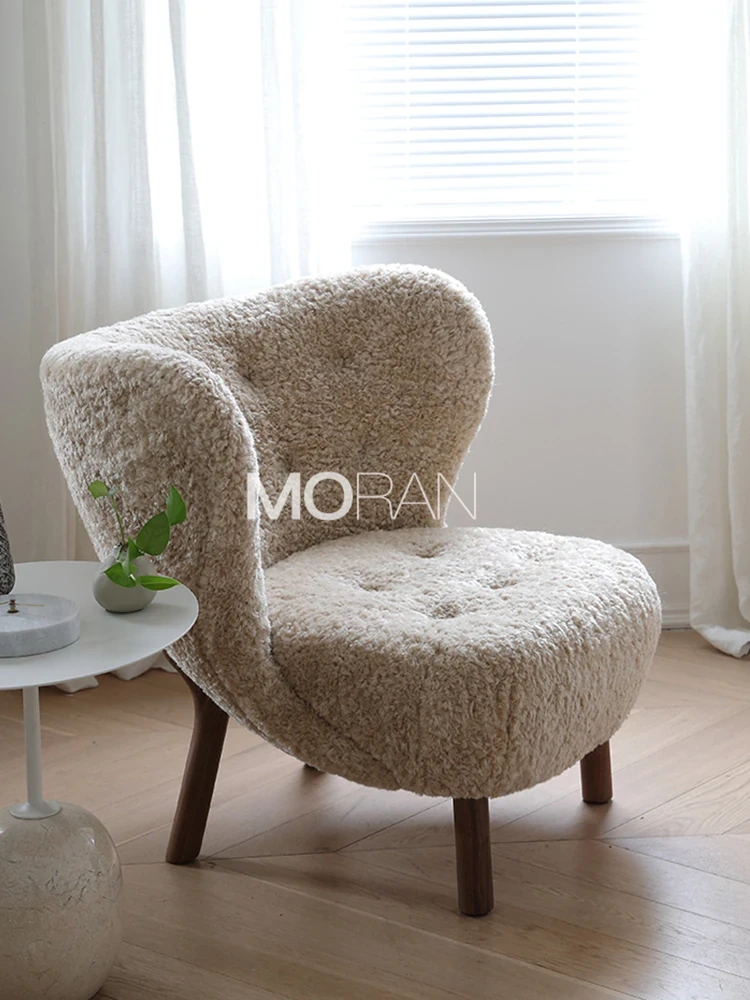 German Cream-Style Modern Minimalist Single Sofa Chair - Cozy Lounge Chair with Designer Lazy Design for Home, Upholstered in Luxurious Lambswool