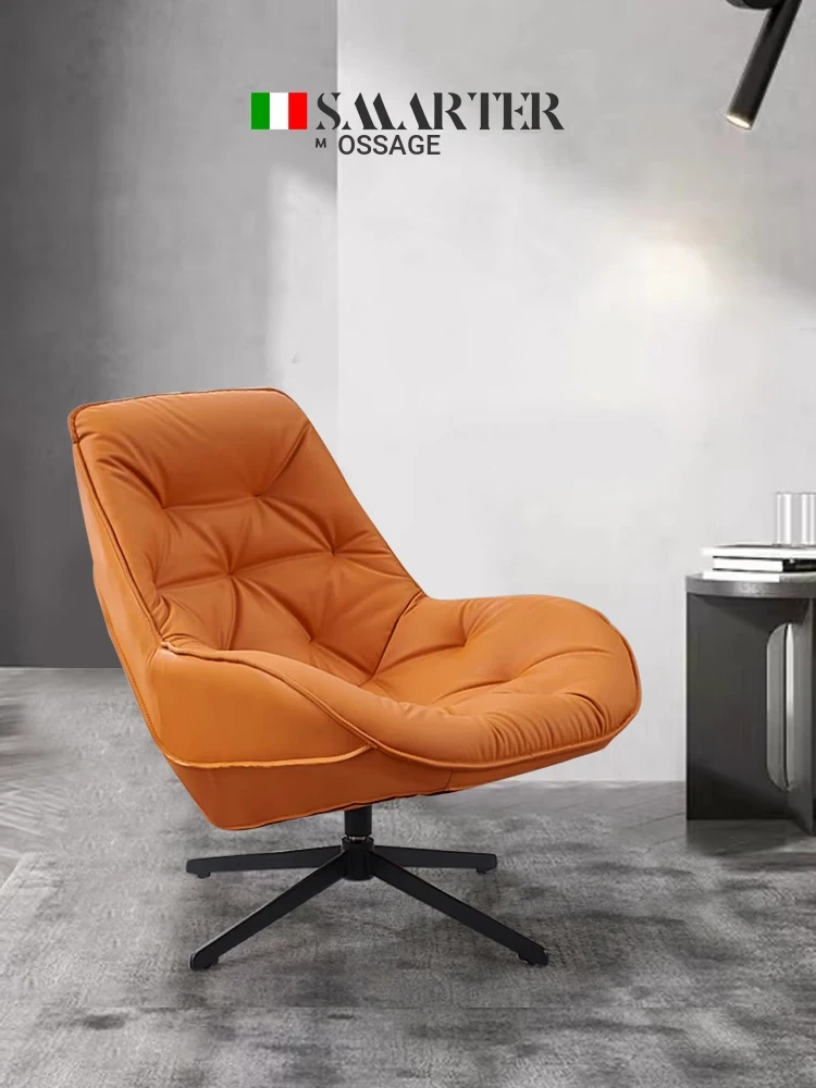 Italian Style Swivel Armchair - Modern Minimalist Design, Luxurious Top-Grain Leather, Perfect for Living Rooms, Relax in Style with this Unique Gold Ingot Chair