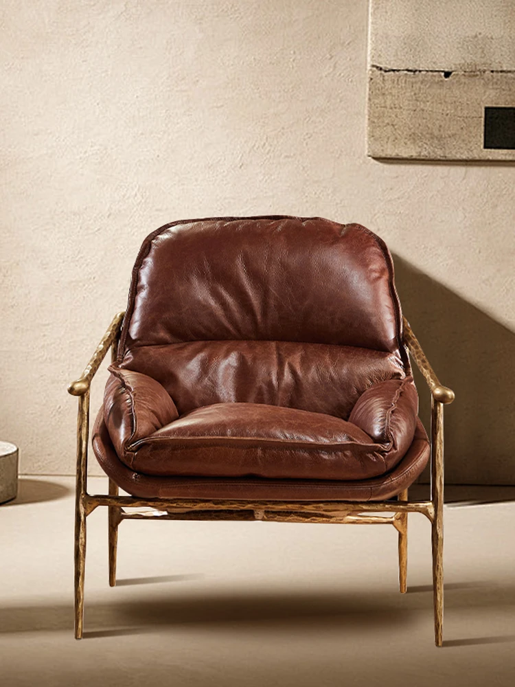 Italian Minimalist Handmade Vintage Waxed Leather Top Grain Cowhide Lounge Chair - Designer Genuine Leather Single Cigar Sofa Chair for Ultimate Comfort and Style