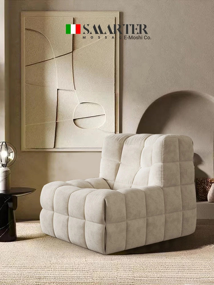 Waffle Island Sofa Chair - Italian Minimalist Designer Lounge Chair for Relaxation, Creamy Tofu Block Style Single Armchair for Your Living Room