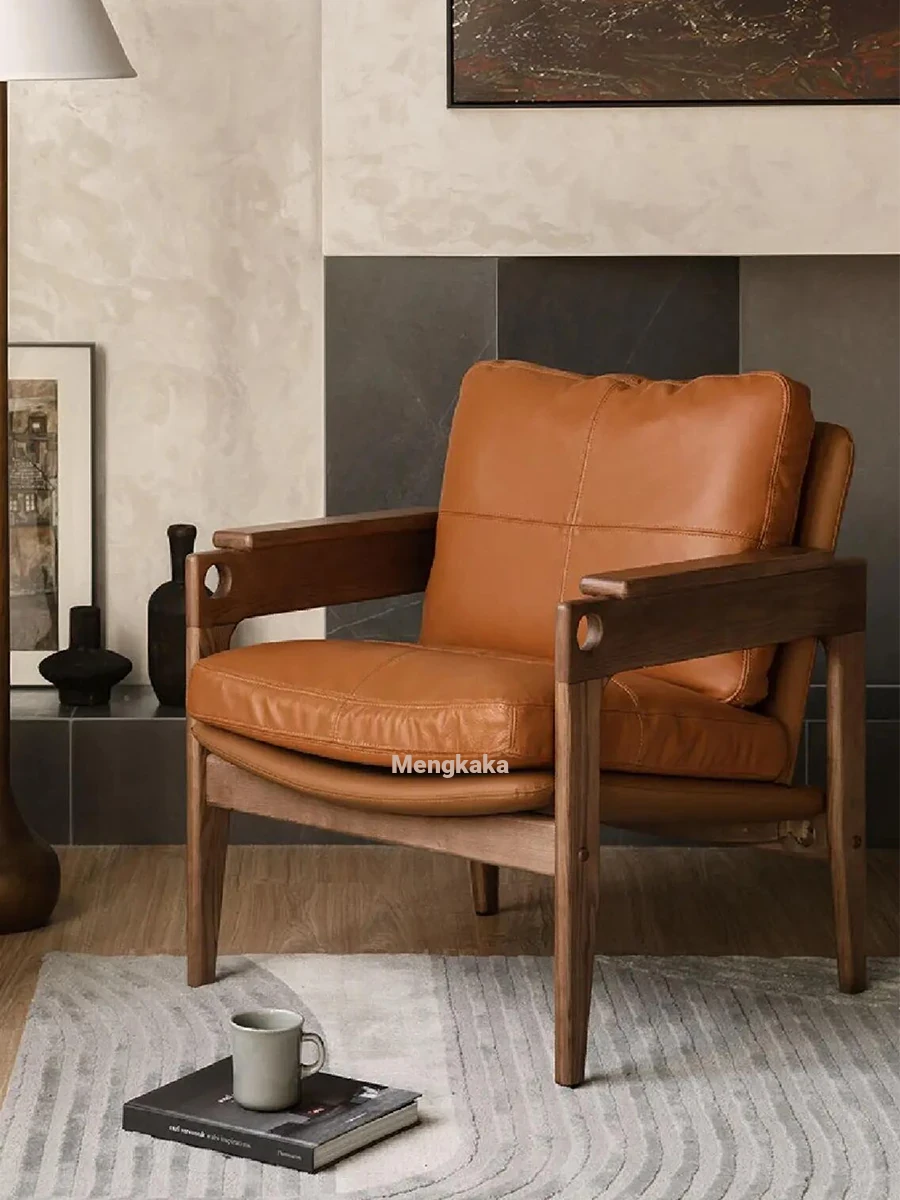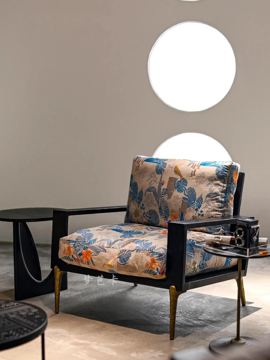 Vintage Solid Wood Leisure Chair - Single Sofa for Living Room, Ideal for Hotels and Guesthouses, Designer Balcony Lounge Chair, Perfect for Relaxation and Style.