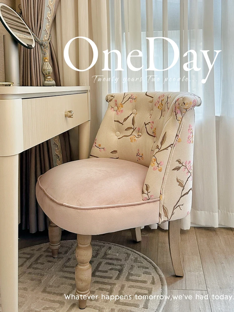 French Chic Minimalist Makeup Stool – Solid Wood Casual Chair for Women's Bedrooms – Stylish Sofa Chair for Relaxation and Makeup Sessions