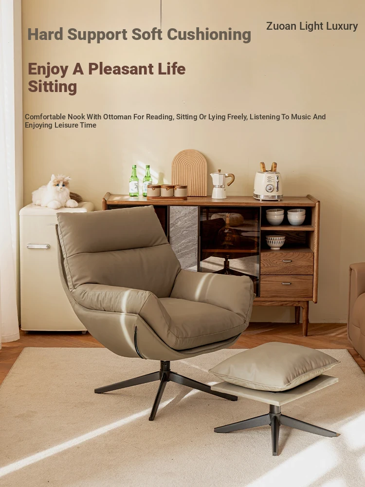 Nordic Style Single Recliner Chair - Perfect for Small Spaces, Balcony, and Cozy Living Rooms. Vintage American Leather Sofa Armchair for Ultimate Relaxation.