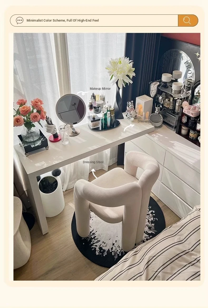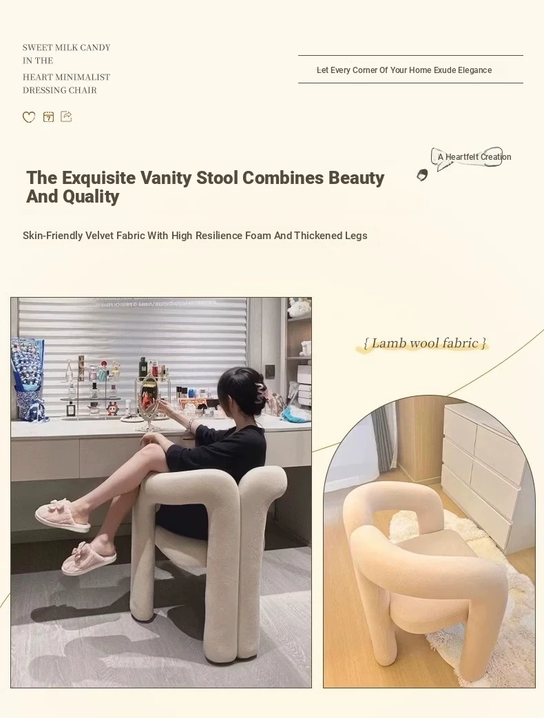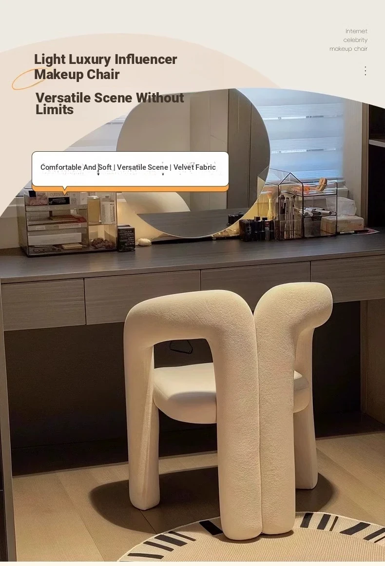 Elegant Makeup Chair for Home Use - Stylish Vanity Stool for Beauty Salons, High-End Single Leisure Chair for Girls' Bedrooms, Trendy Design Perfect for Influencers.