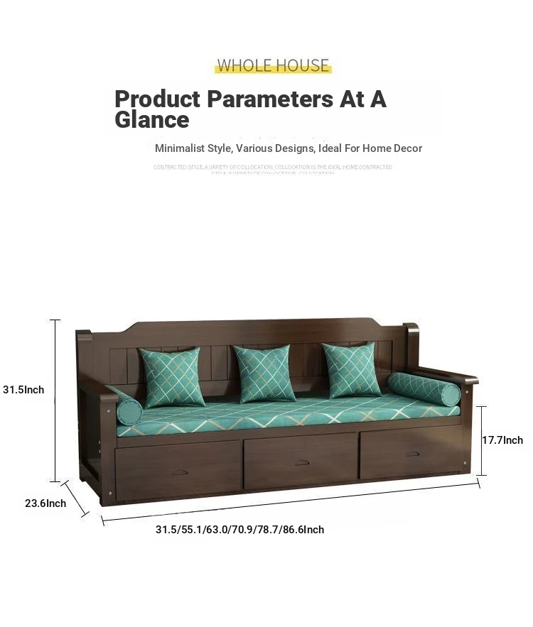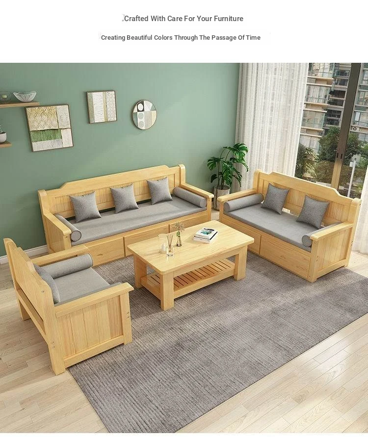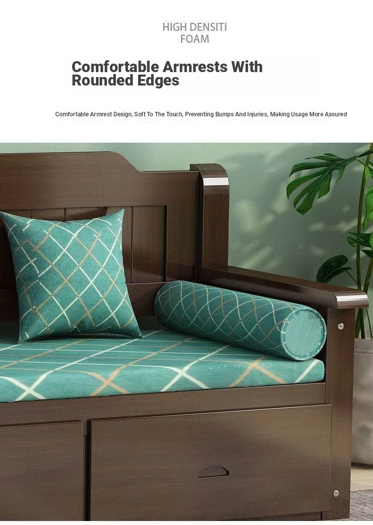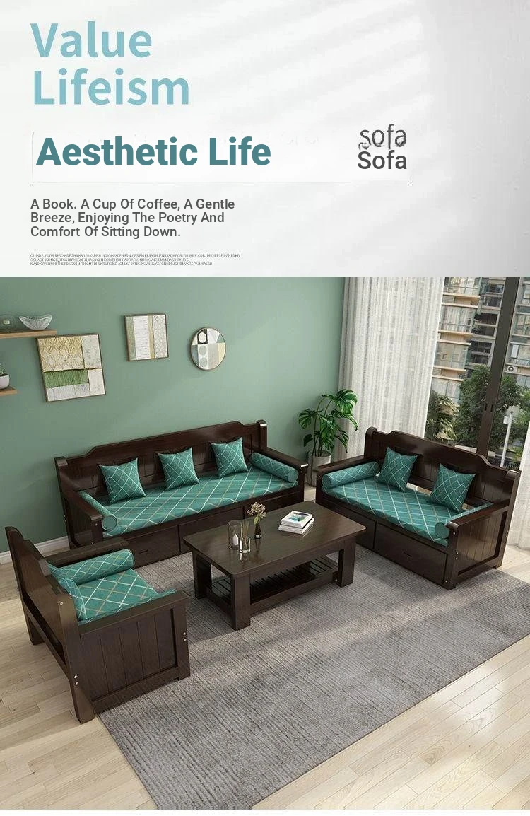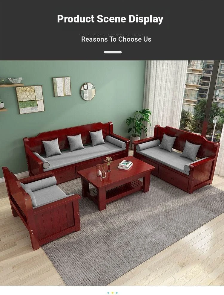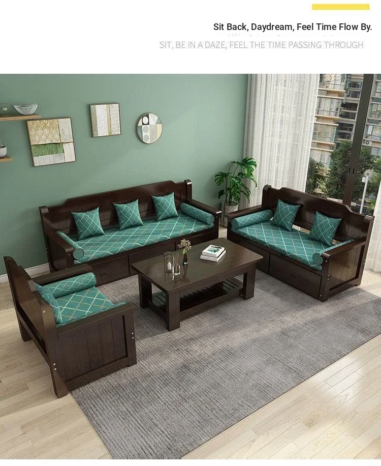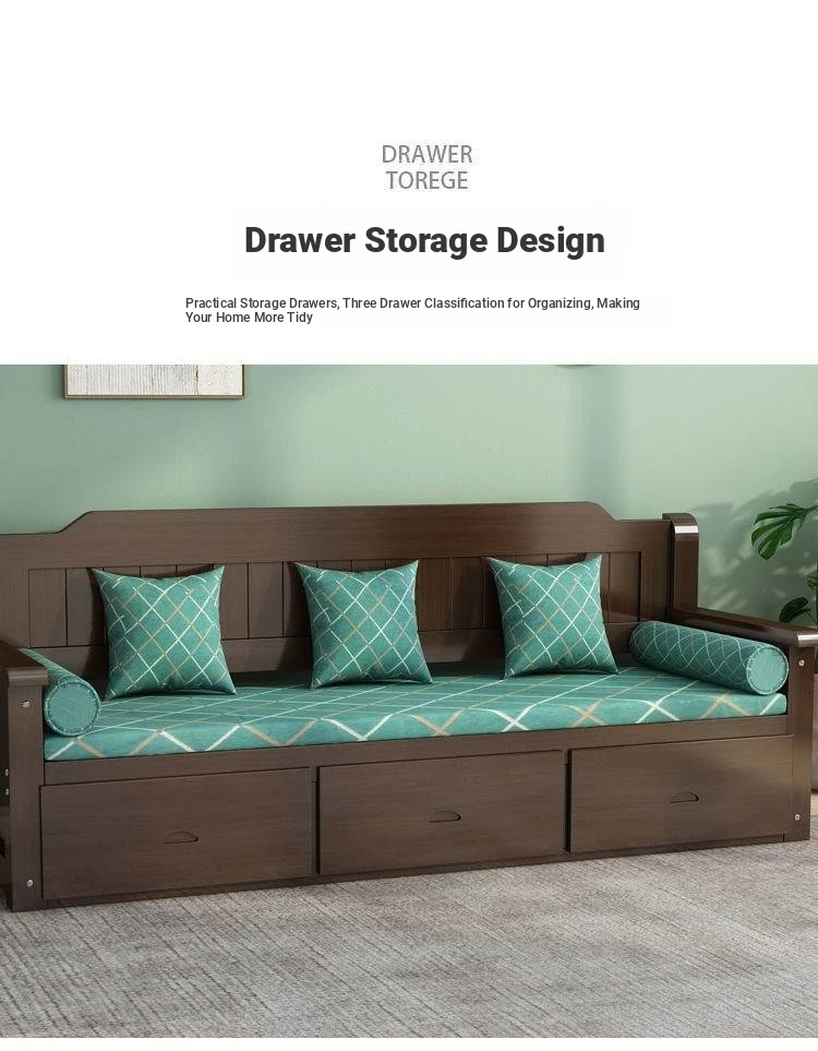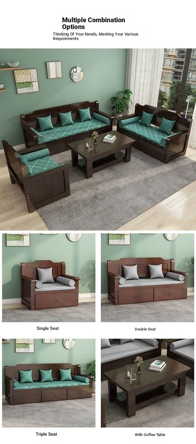 Elegant New Chinese-Style Solid Wood Sofa Set for Living Room – Compact 3-Seater with Storage Drawers, Perfect for Small Homes