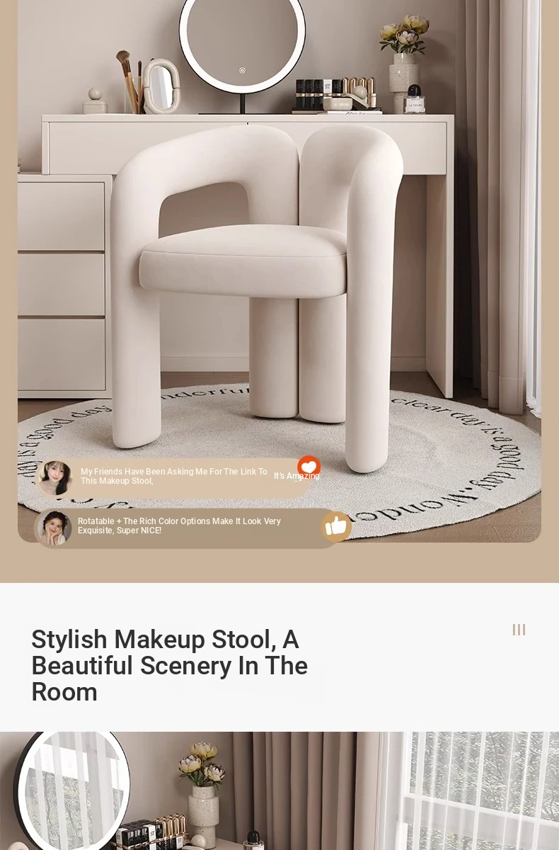 German Makeup Stool - Stylish and Creative Vanity Chair for Home Bedroom, Trendy and Elegant Lounge Chair with a Touch of Luxury, Perfect for Your Dressing Table.