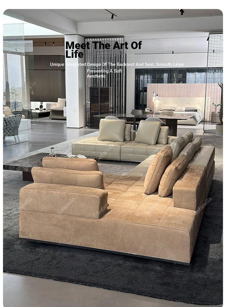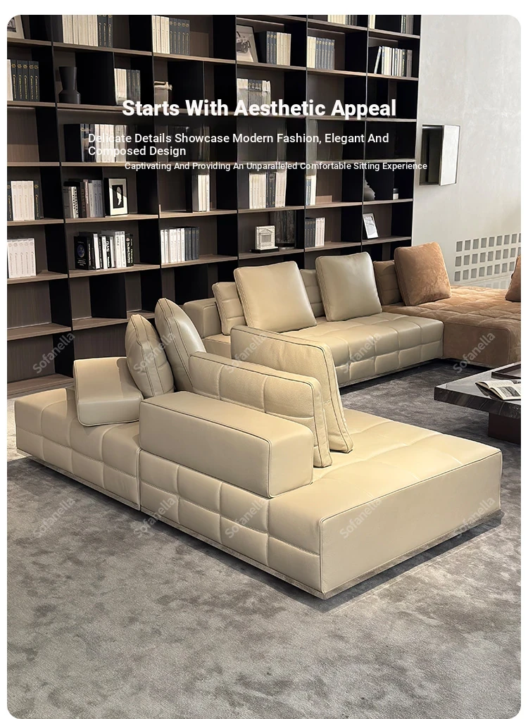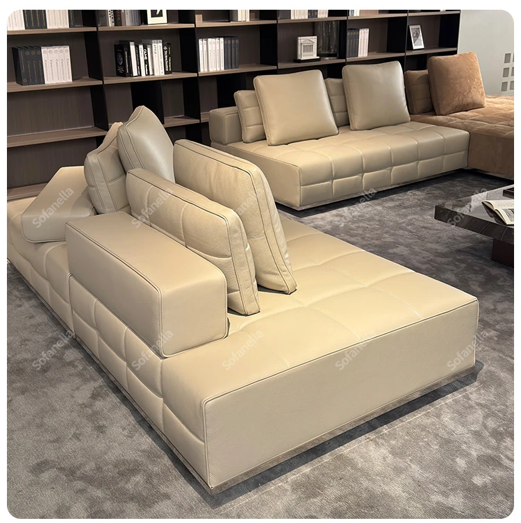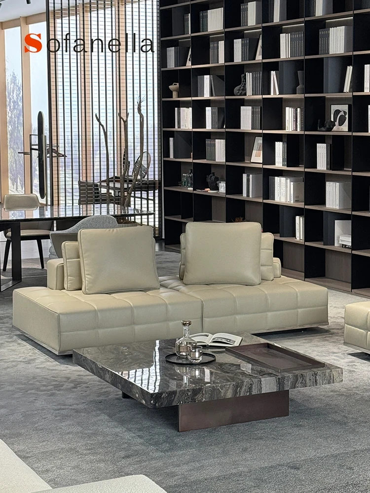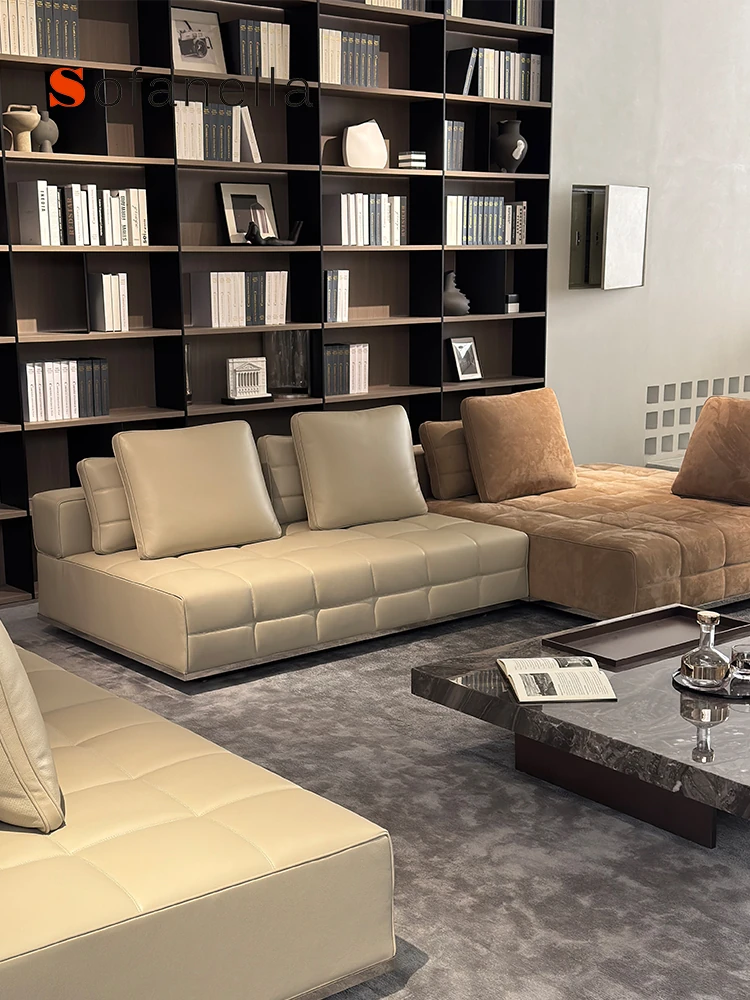 Italian Minimalist Genuine Leather Sofa - Chic Modular Design for Spacious Living Rooms and Villas, Tailored with High-End Cotton and Linen Combinations for Ultimate Comfort and Style.