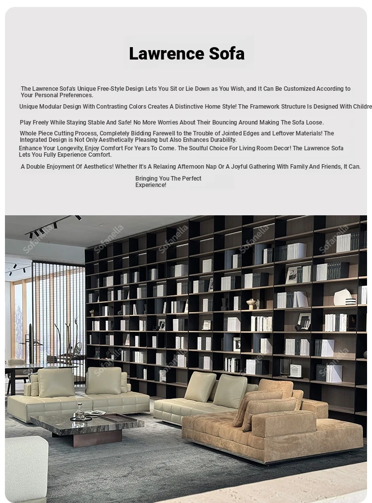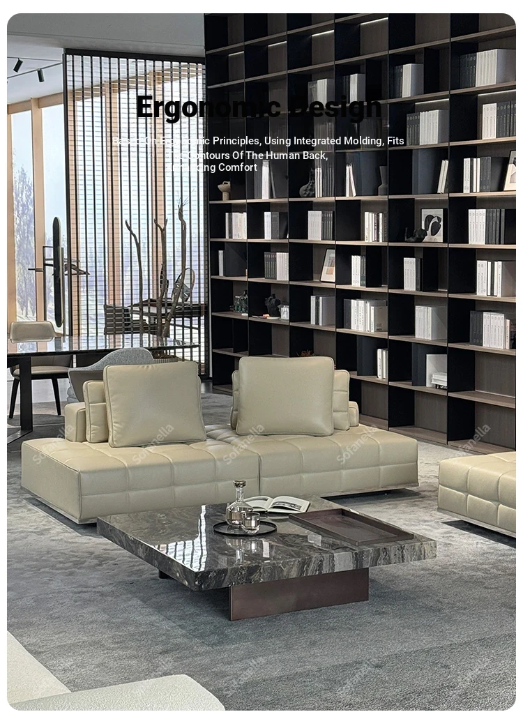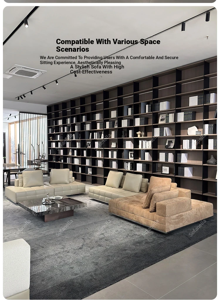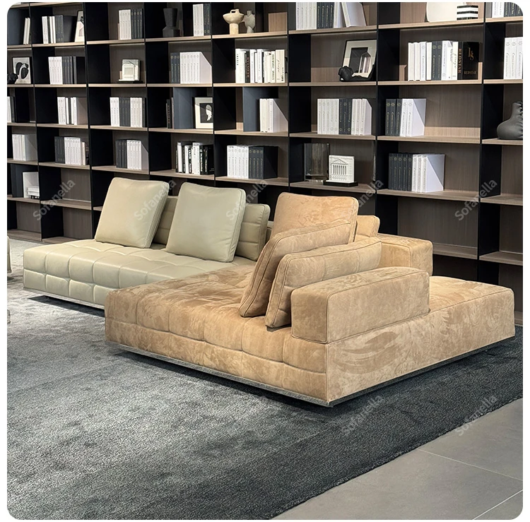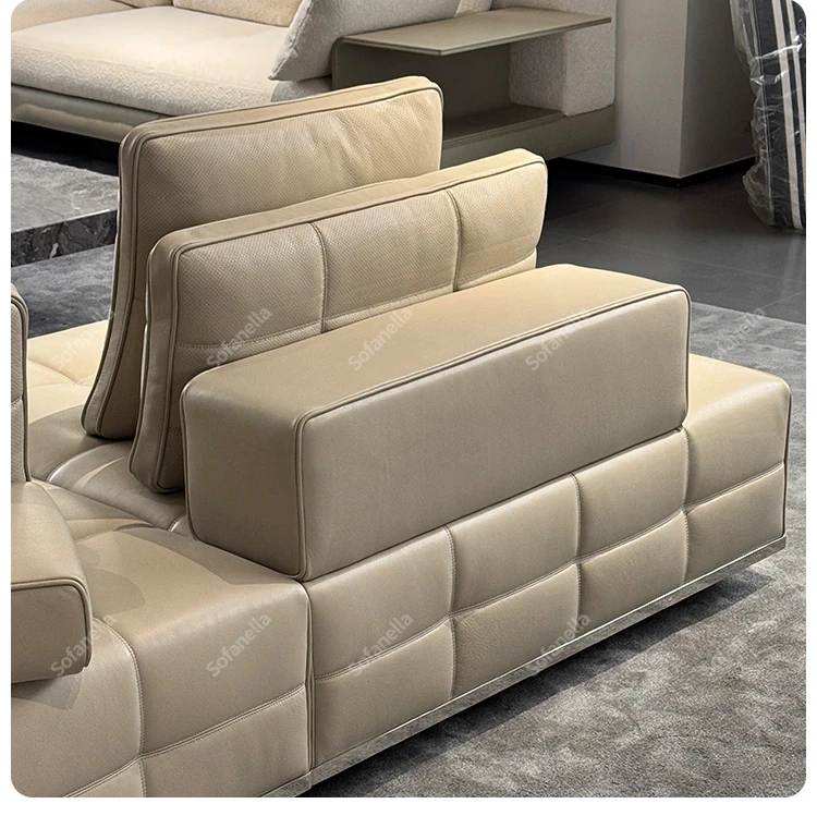 Italian Minimalist Genuine Leather Sofa - Chic Modular Design for Spacious Living Rooms and Villas, Tailored with High-End Cotton and Linen Combinations for Ultimate Comfort and Style.