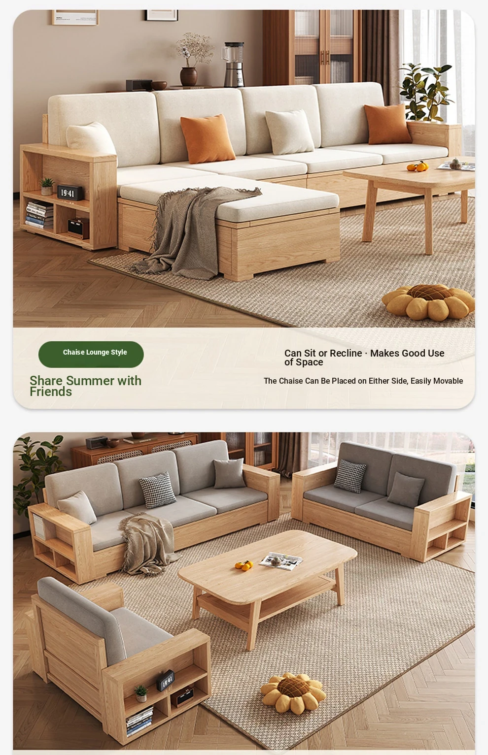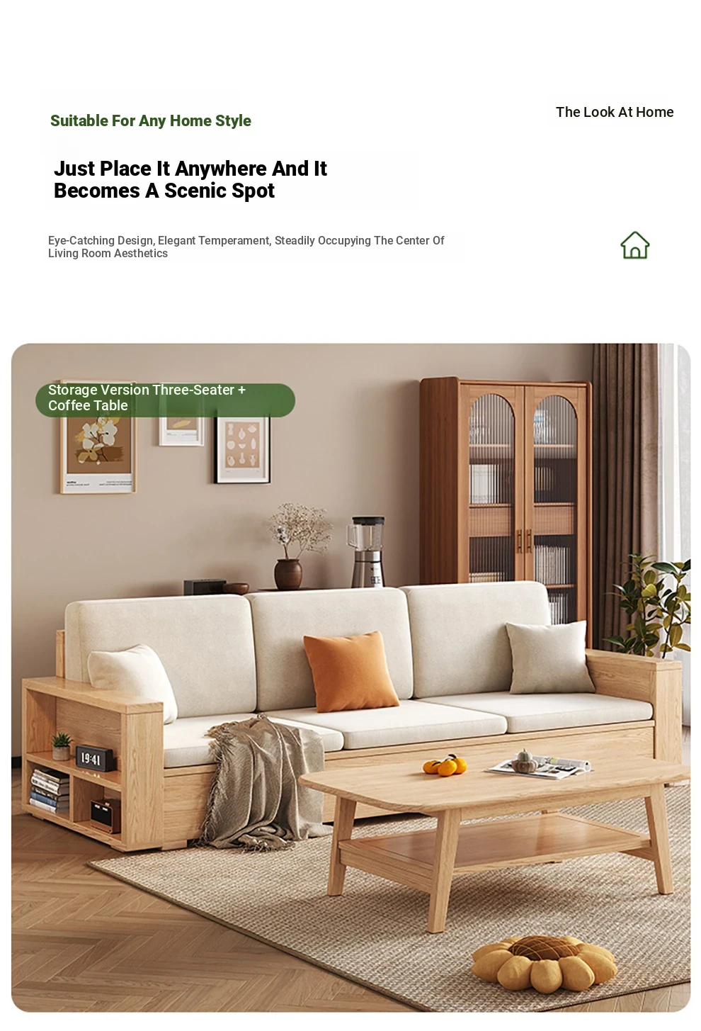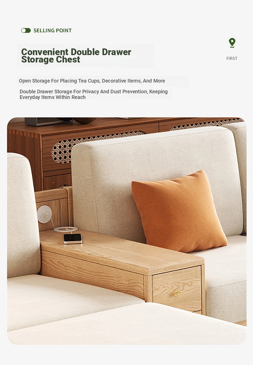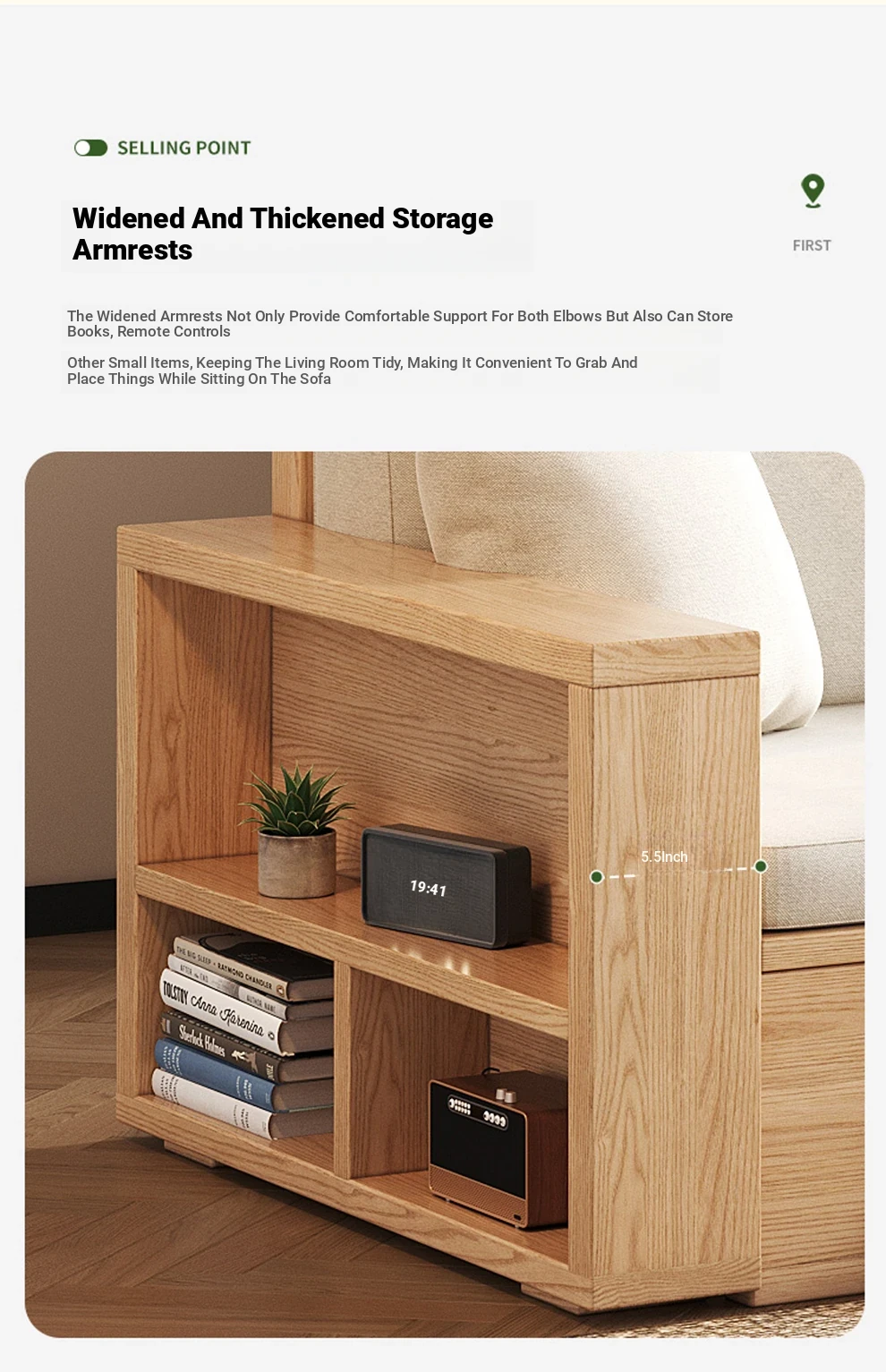 Nordic Solid Wood Sofa for Small Living Rooms - Modern Minimalist Design with Ash Wood Frame and High-Storage Box Features, Perfect for Cozy Spaces