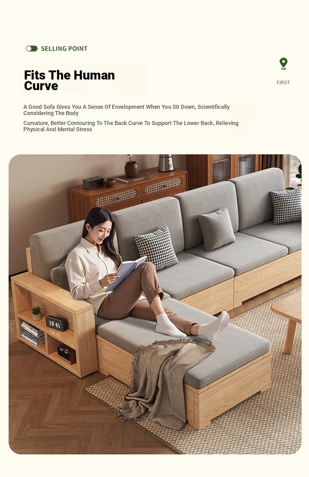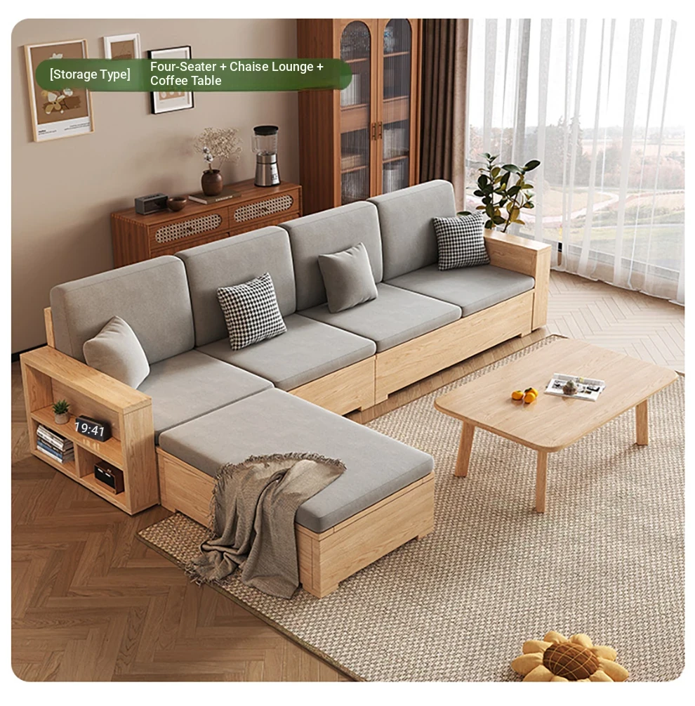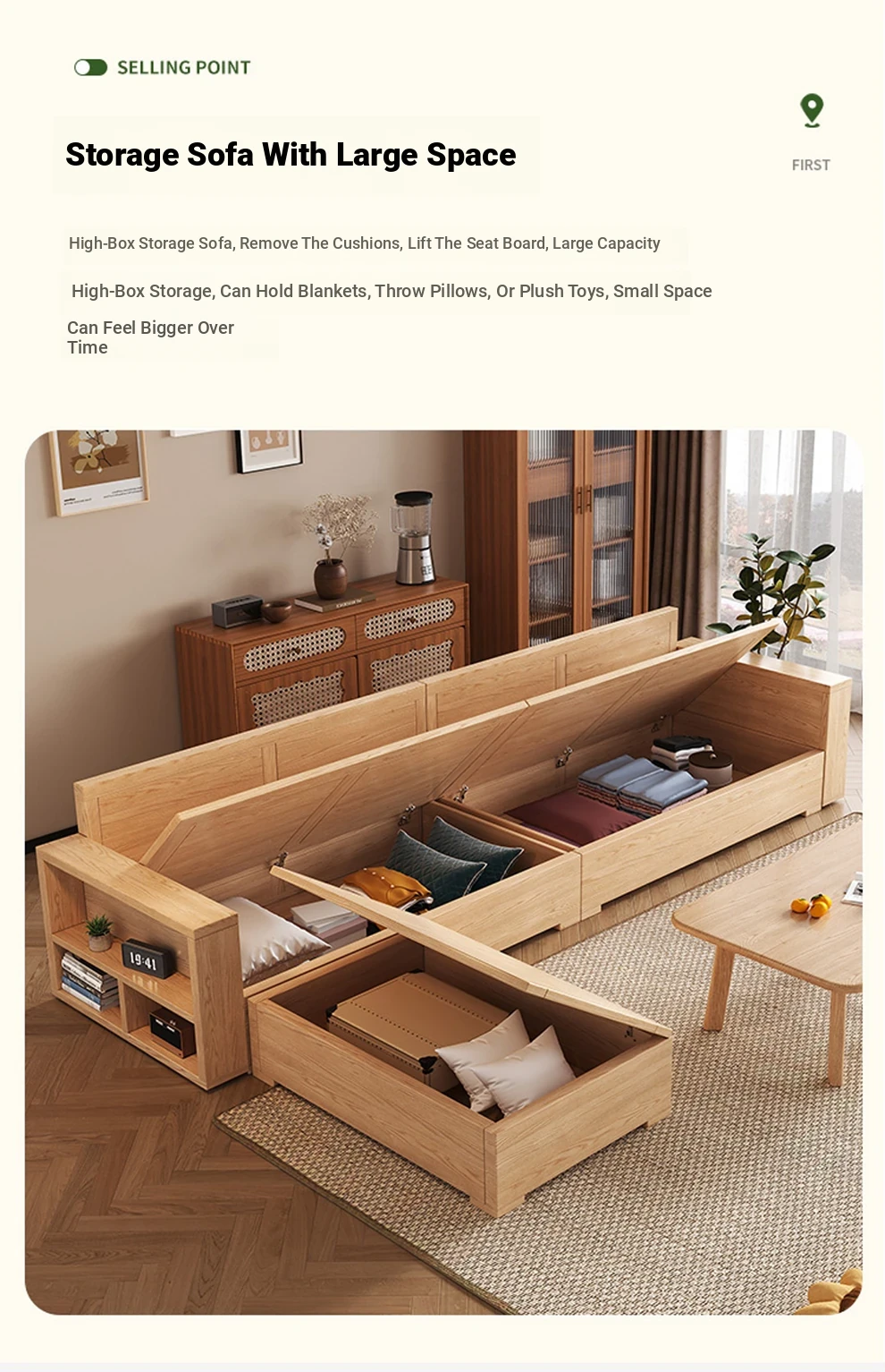 Nordic Solid Wood Sofa for Small Living Rooms - Modern Minimalist Design with Ash Wood Frame and High-Storage Box Features, Perfect for Cozy Spaces