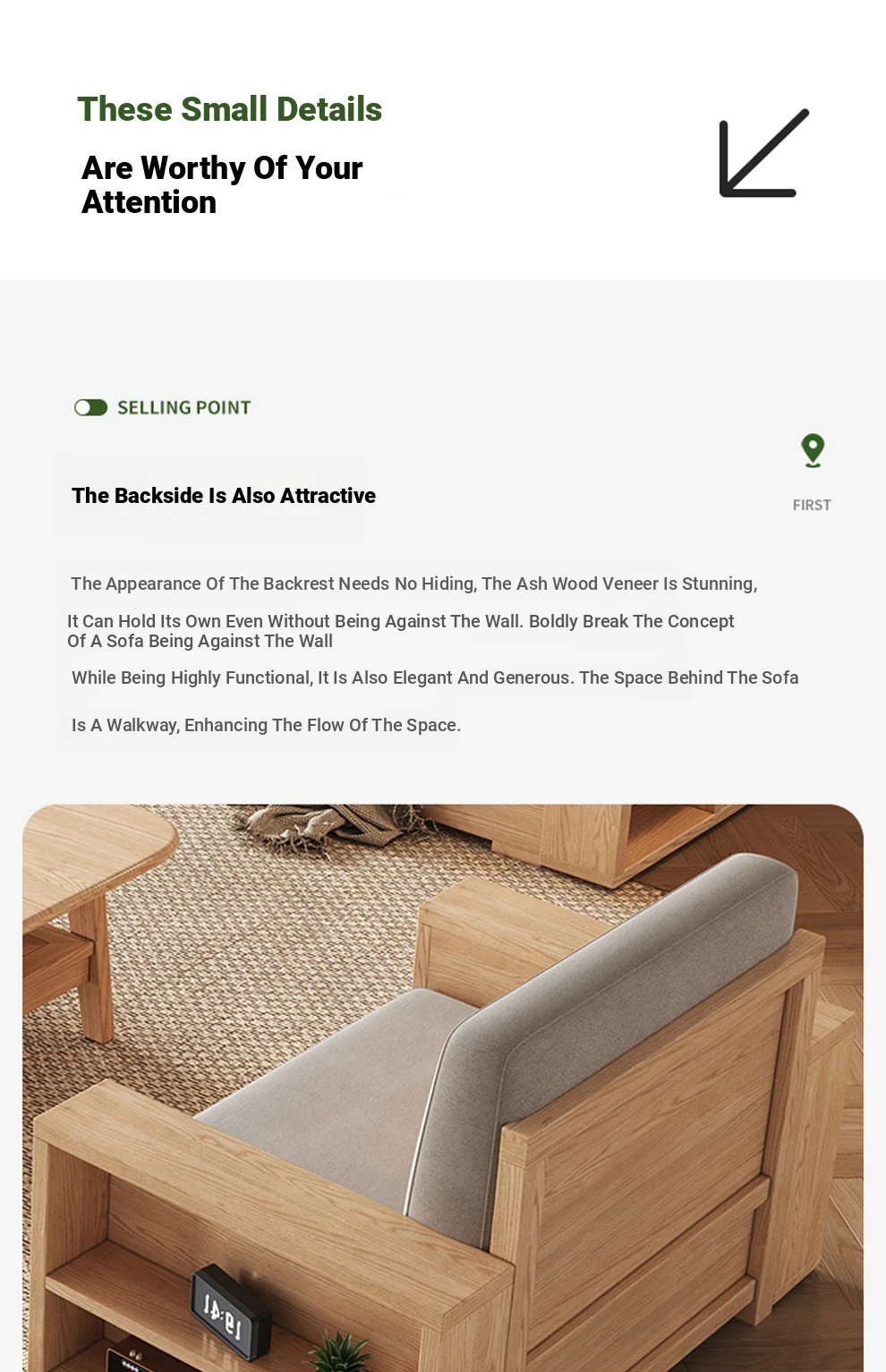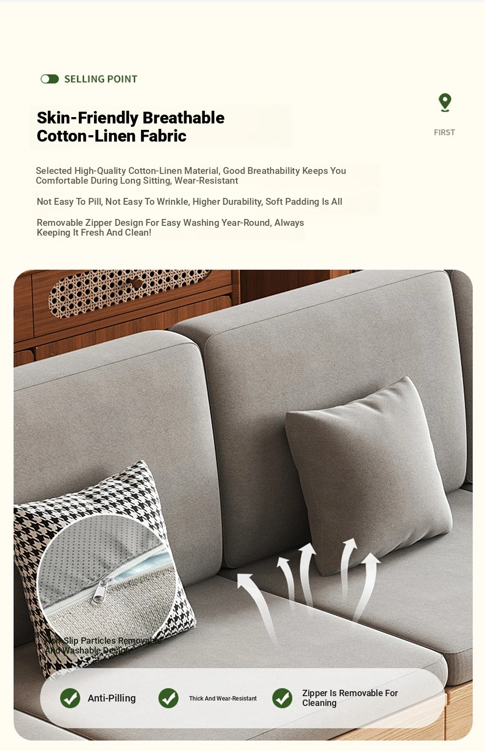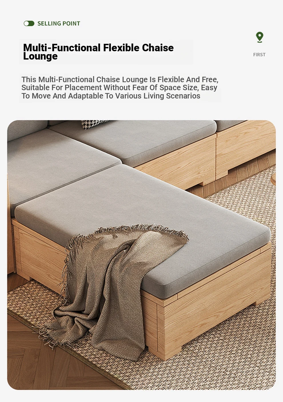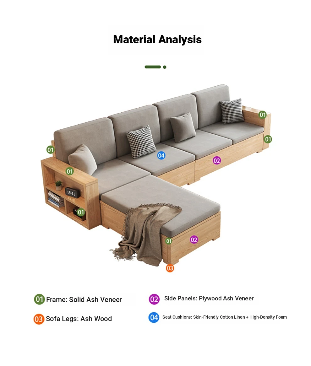 Nordic Solid Wood Sofa for Small Living Rooms - Modern Minimalist Design with Ash Wood Frame and High-Storage Box Features, Perfect for Cozy Spaces