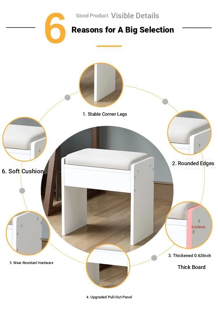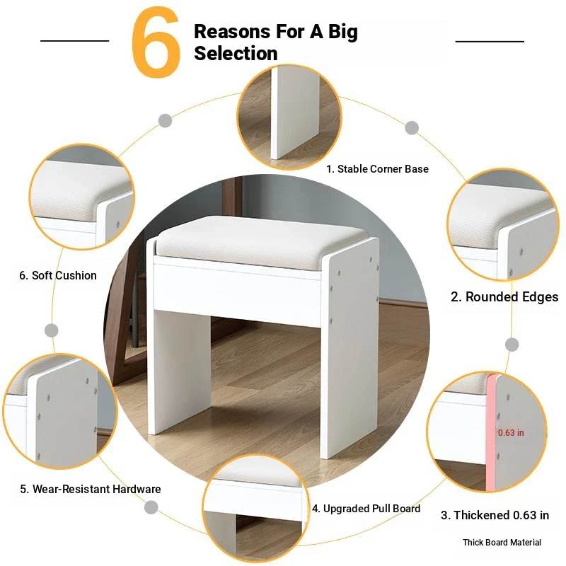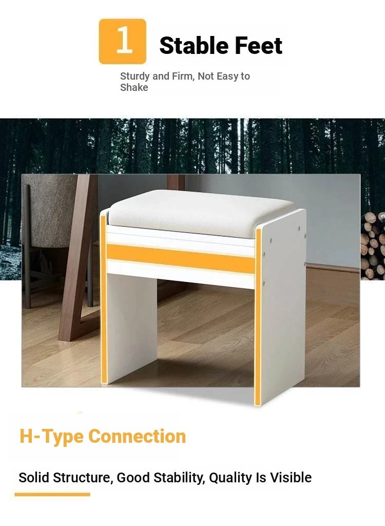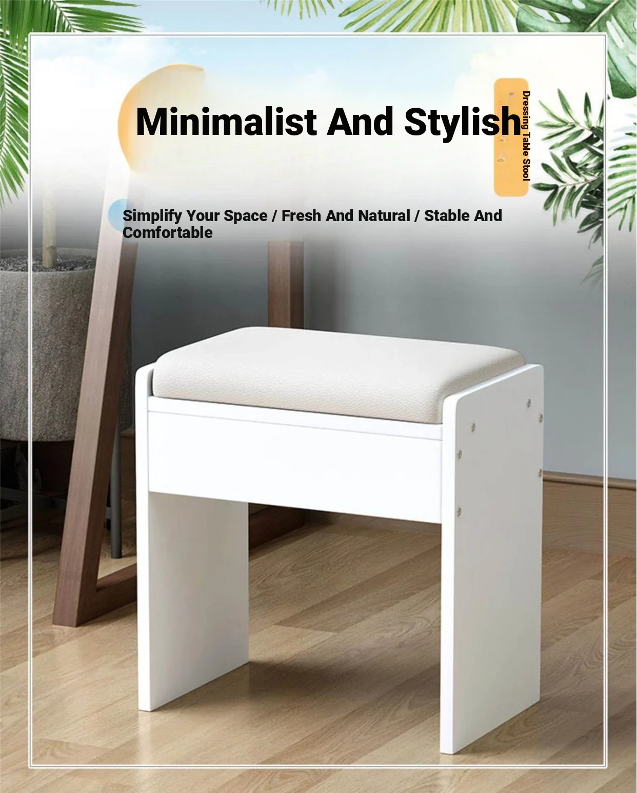 Stylish American-Style Vanity Stool - European Solid Wood Backless Chair for Modern Minimalist Bedrooms and Desks - Perfect for Makeup and Small Spaces