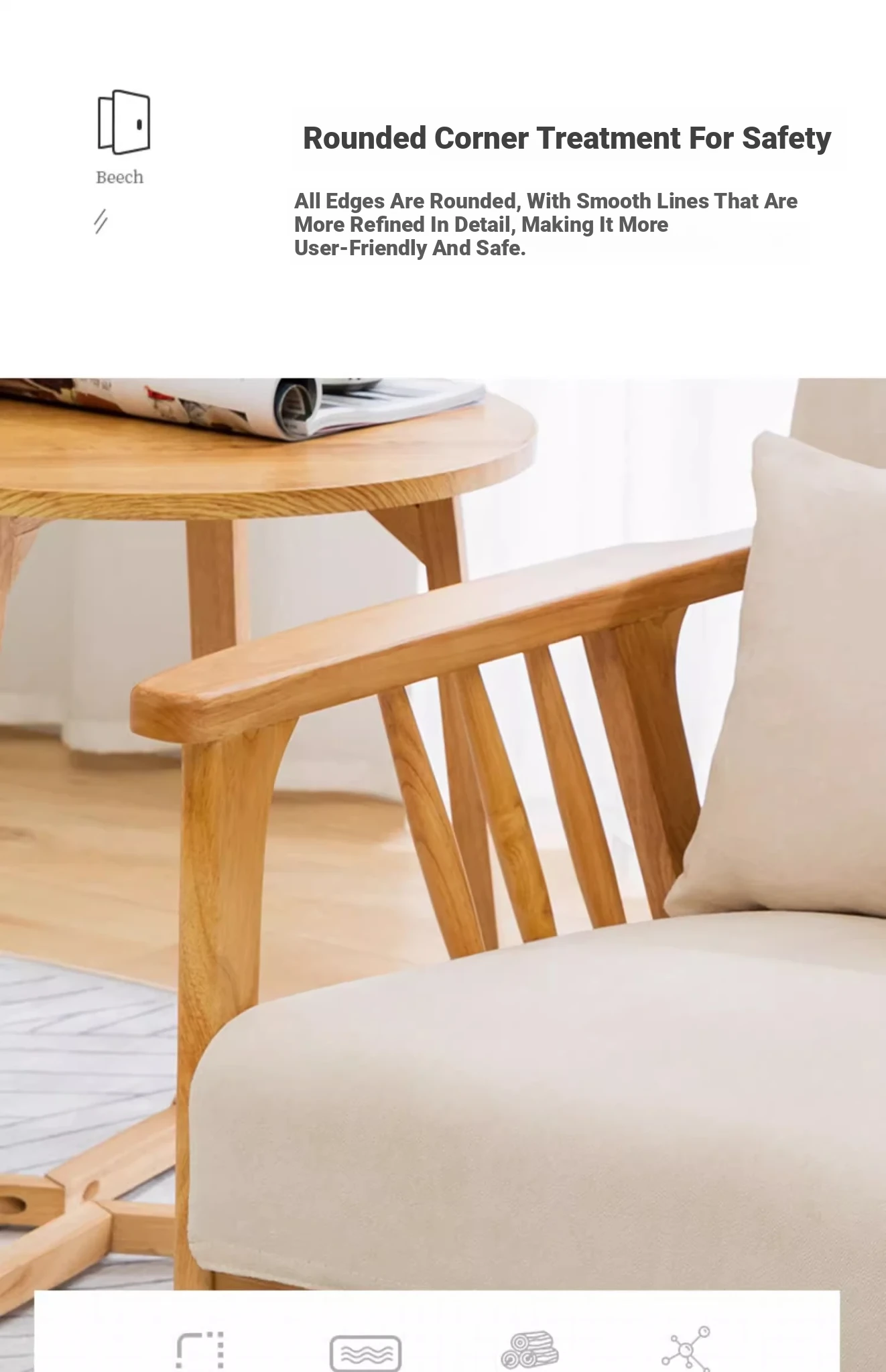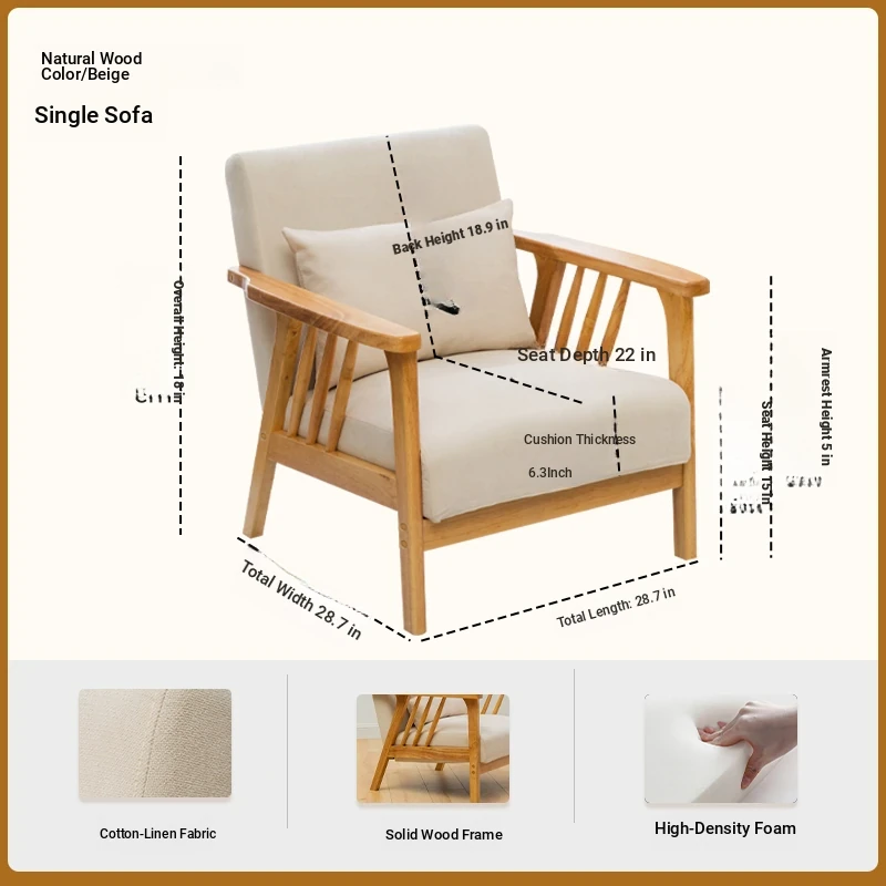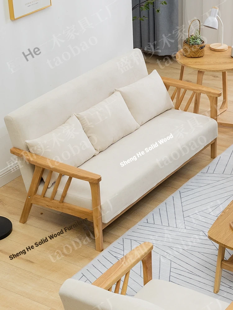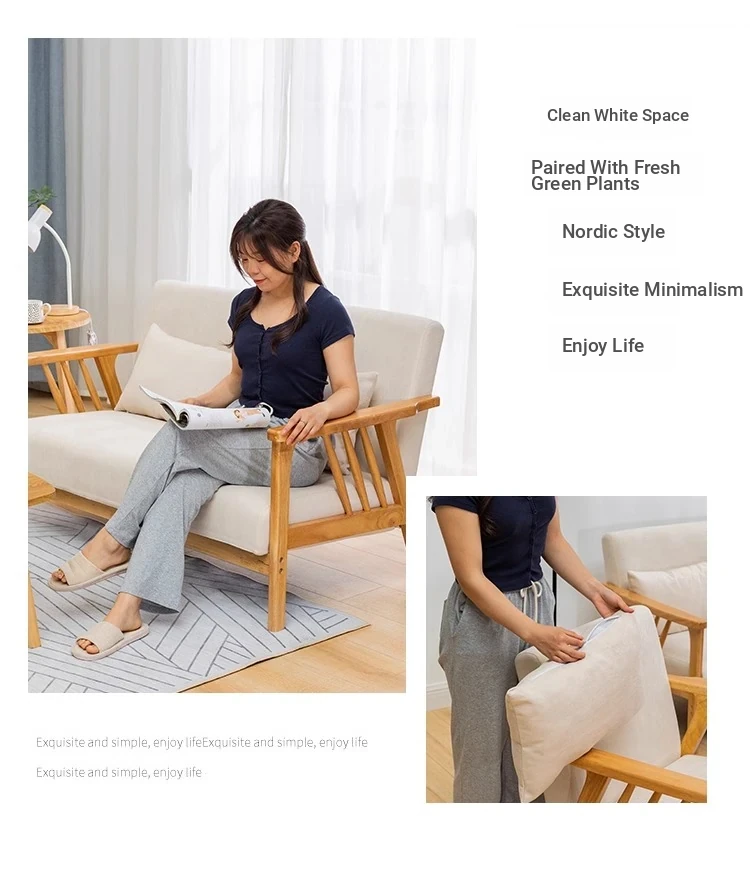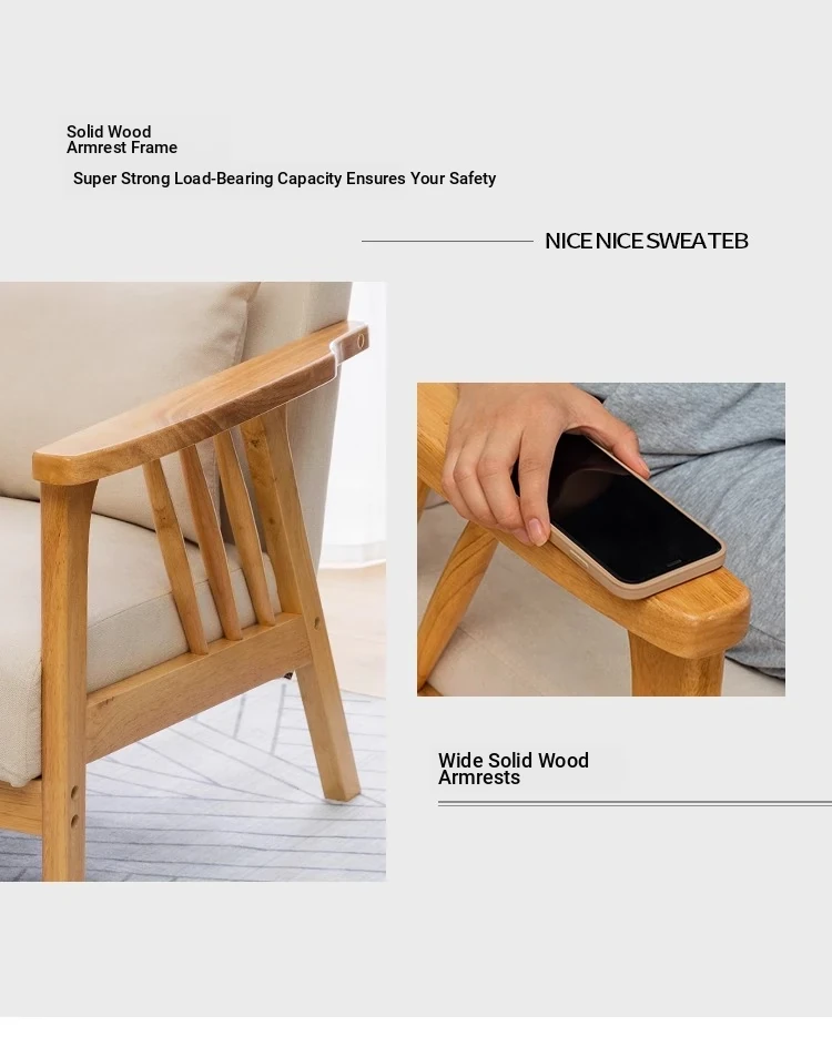 "Stylish Solid Wood Sofa Set - Perfect for Small Spaces, Cozy Fabric Design for Living Rooms, Offices, and Reception Areas"