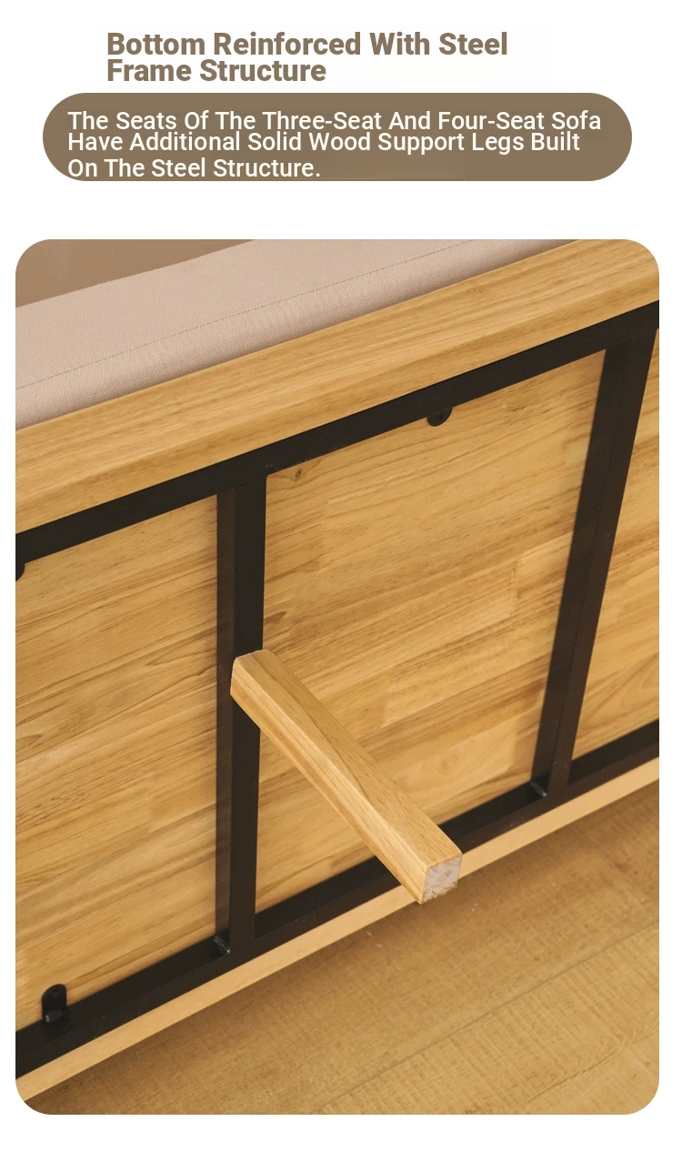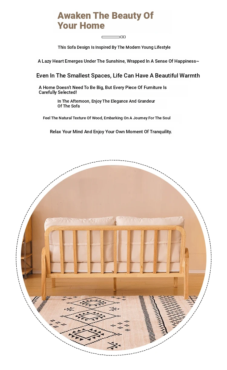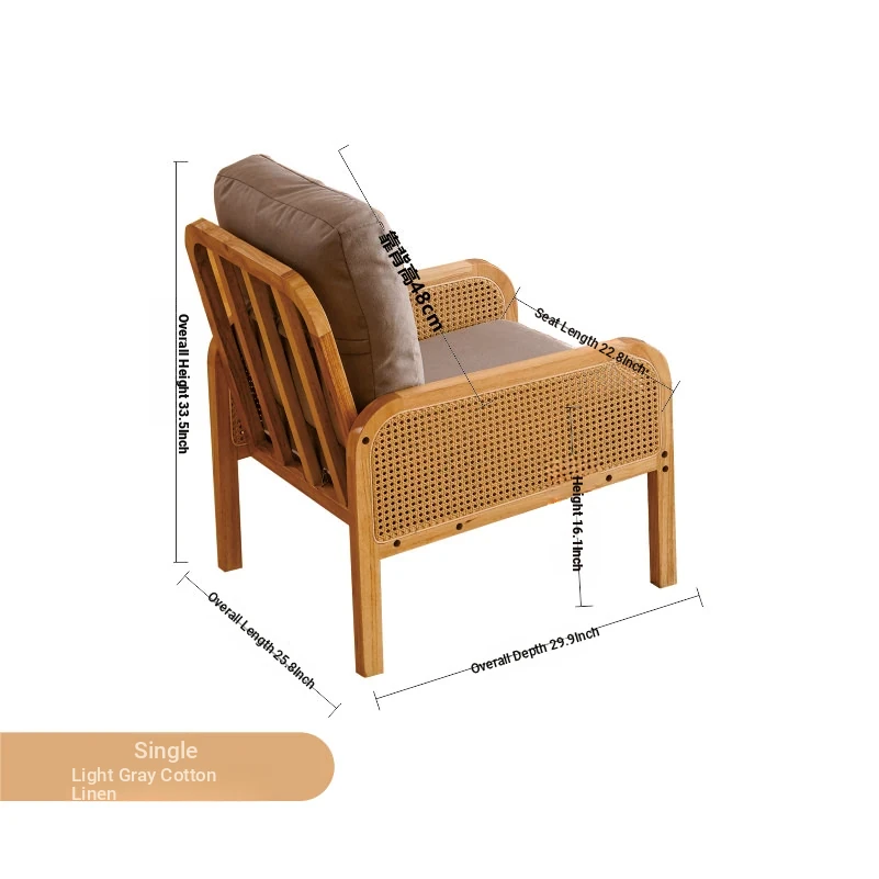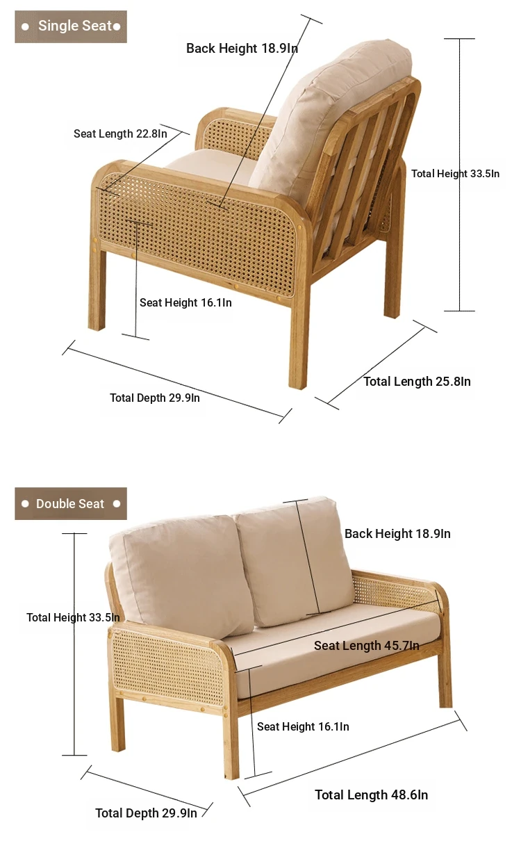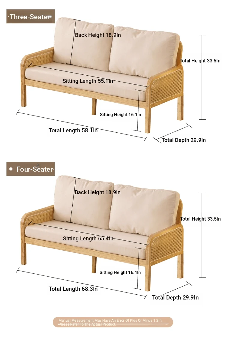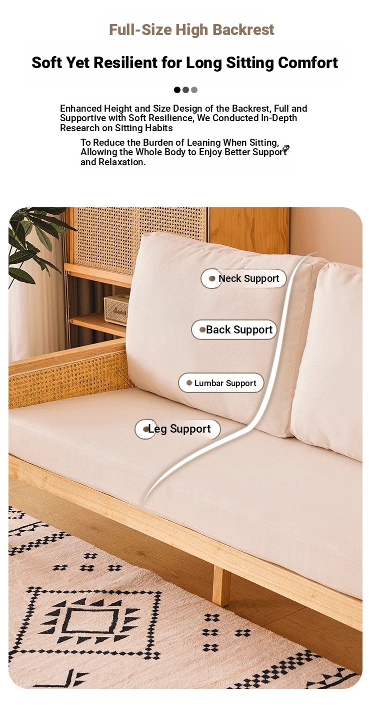 "Versatile Rattan Weave All-Season Solid Wood Sofa - Minimalist Fabric Small Space Design for Cozy Homes, Featuring Natural Wood Aesthetics and Spacious Double Three-Person Layout"