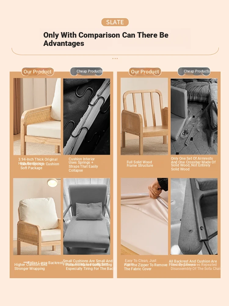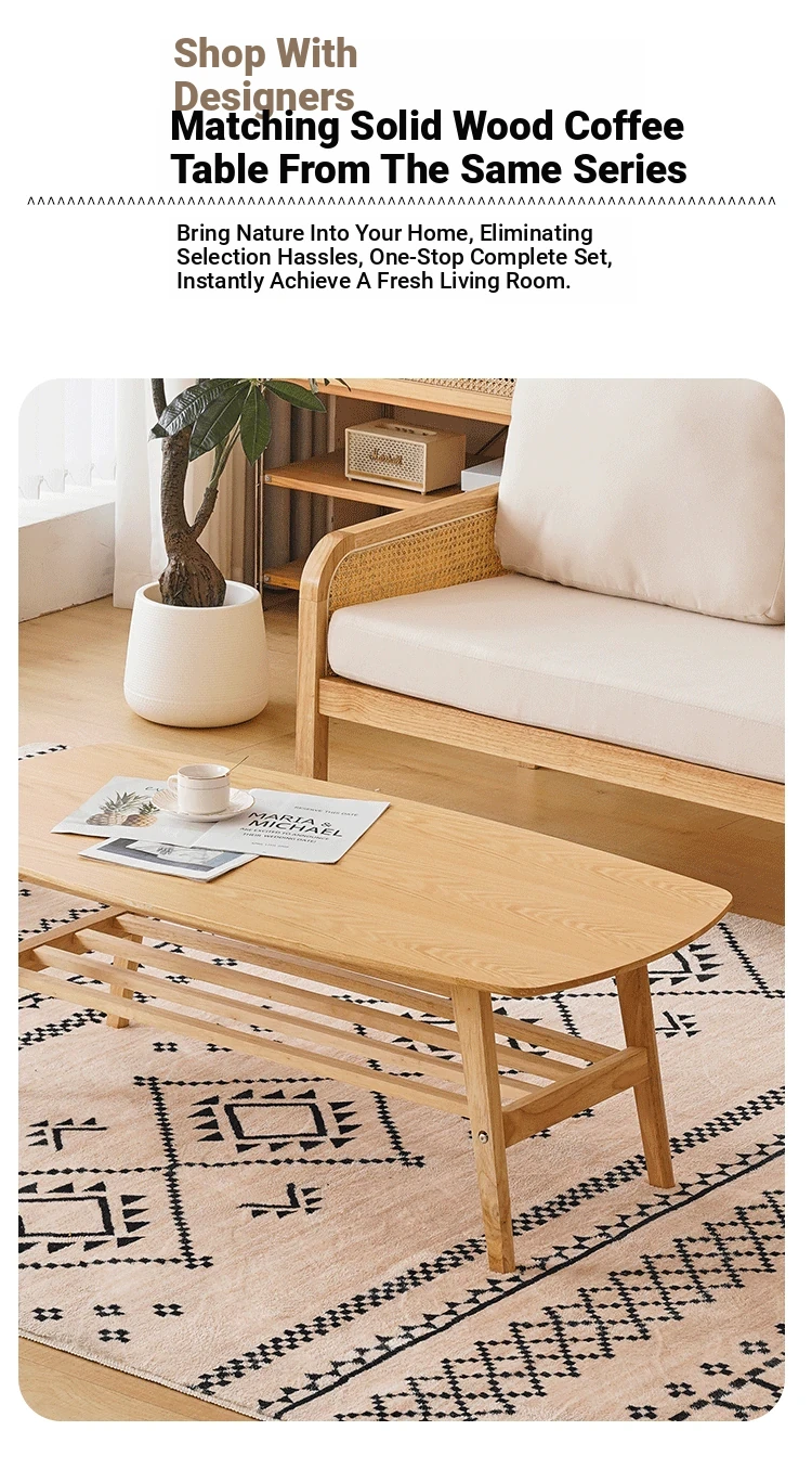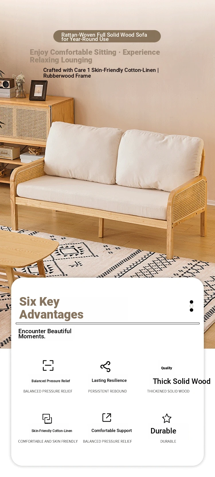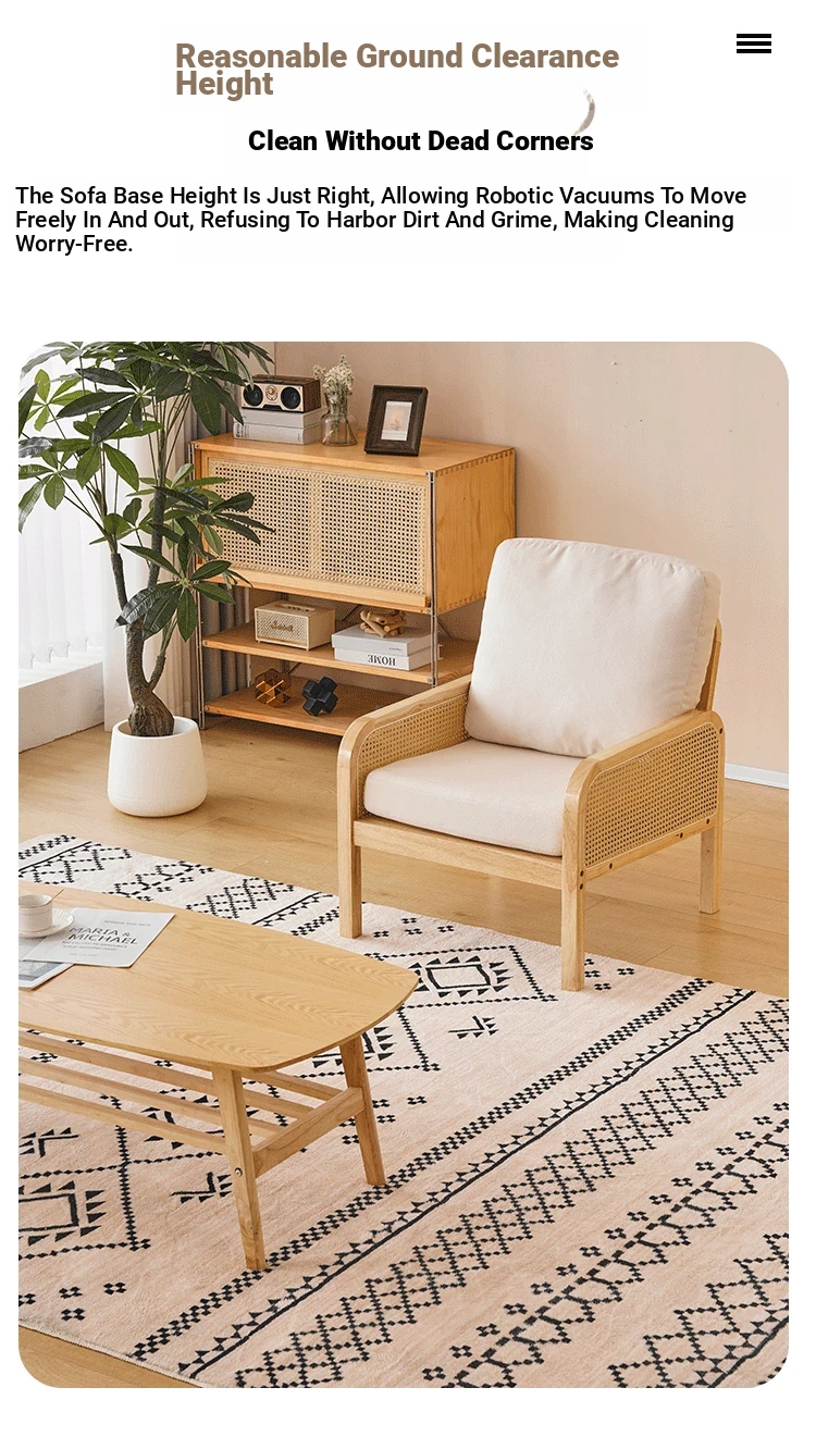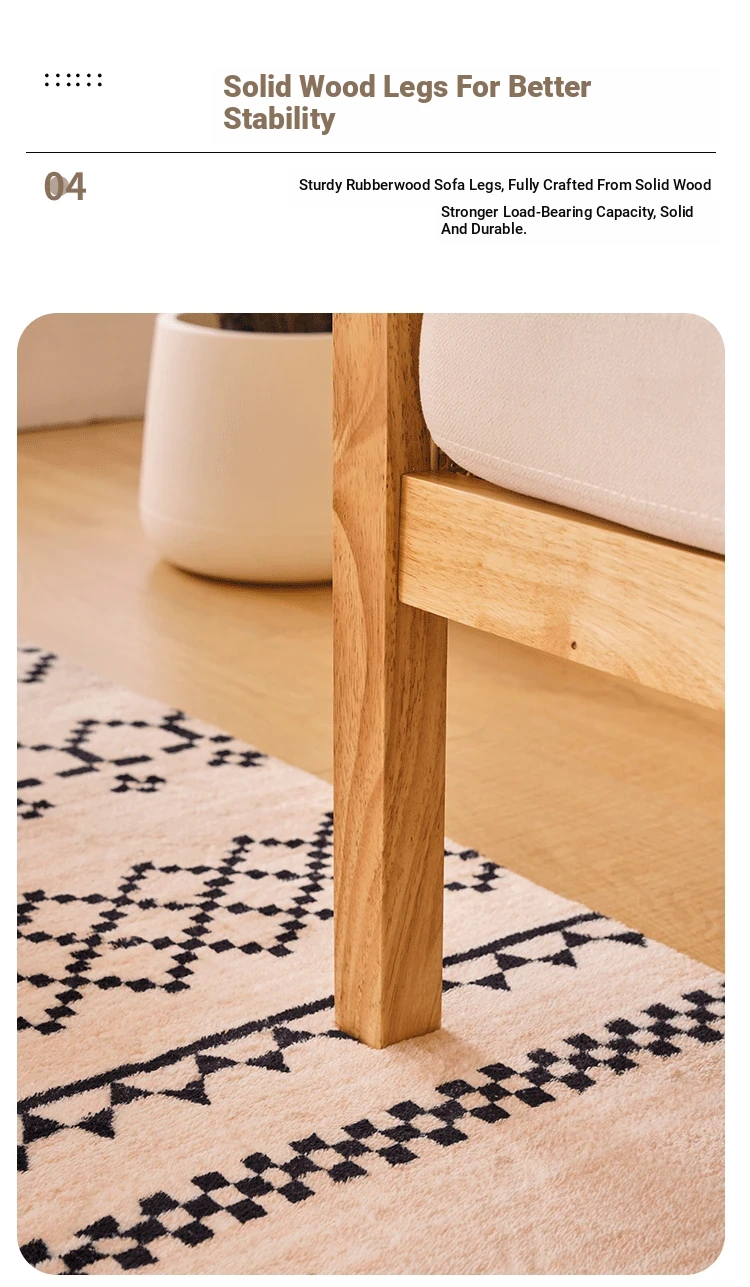 "Versatile Rattan Weave All-Season Solid Wood Sofa - Minimalist Fabric Small Space Design for Cozy Homes, Featuring Natural Wood Aesthetics and Spacious Double Three-Person Layout"