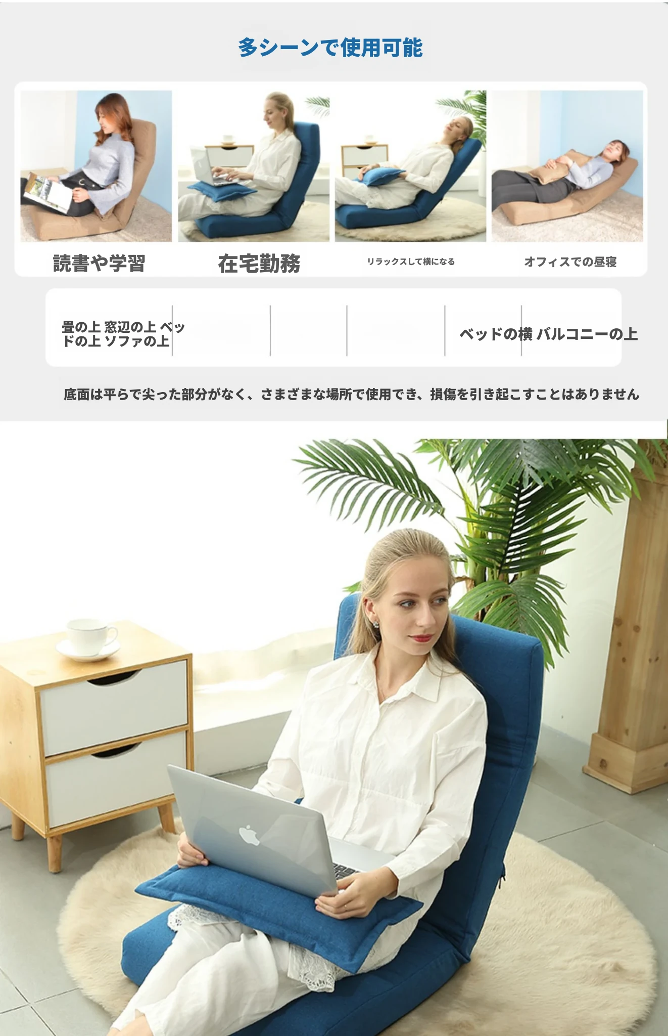 寝室用タタミバルコニーソファー!脚なしで快適なリクライニング、読書やリラックスに最適な一人掛けチェア。デザインはスタイリッシュで、狭いスペースにもぴったり!