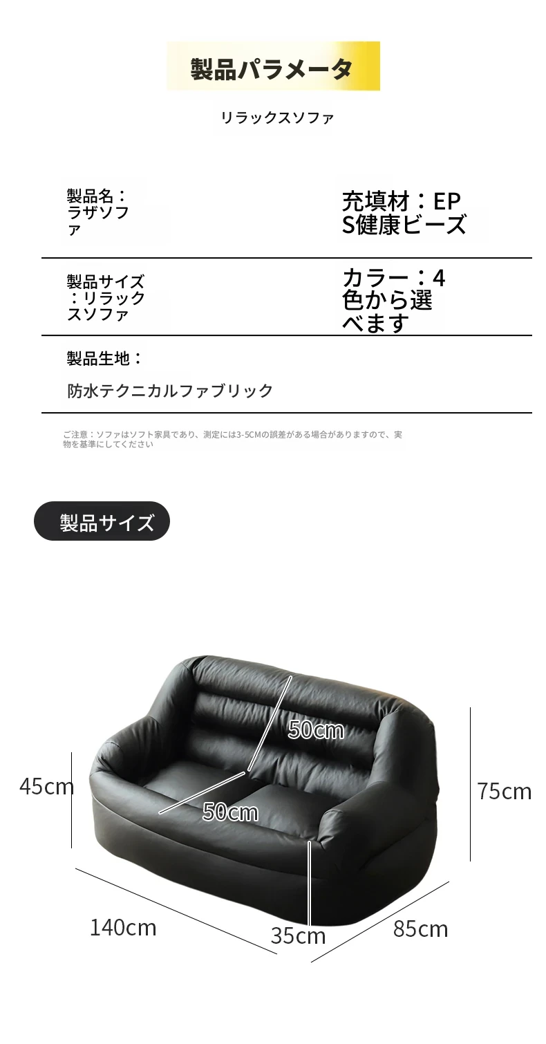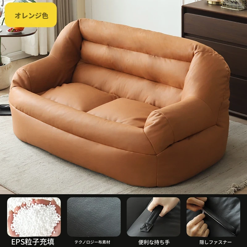 2人用リラックス豆袋ソファ - 小型住宅に最適な畳スタイルの居心地の良いソファ。人間とペットが共にくつろげる、夢のような「犬の巣」ソファ!あなたの生活空間にぴったりのアイテムです。