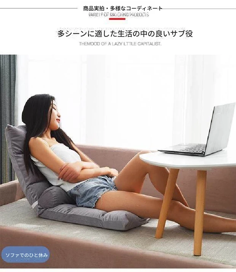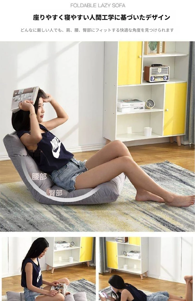 学生寮に最適!リラックスできる背もたれ付きチェア、寝室や榻榻米にもぴったりな一人用リクライニングソファ。脚なしデザインで省スペース、快適なクッション付きで、リラックスタイムをもっと楽しもう!