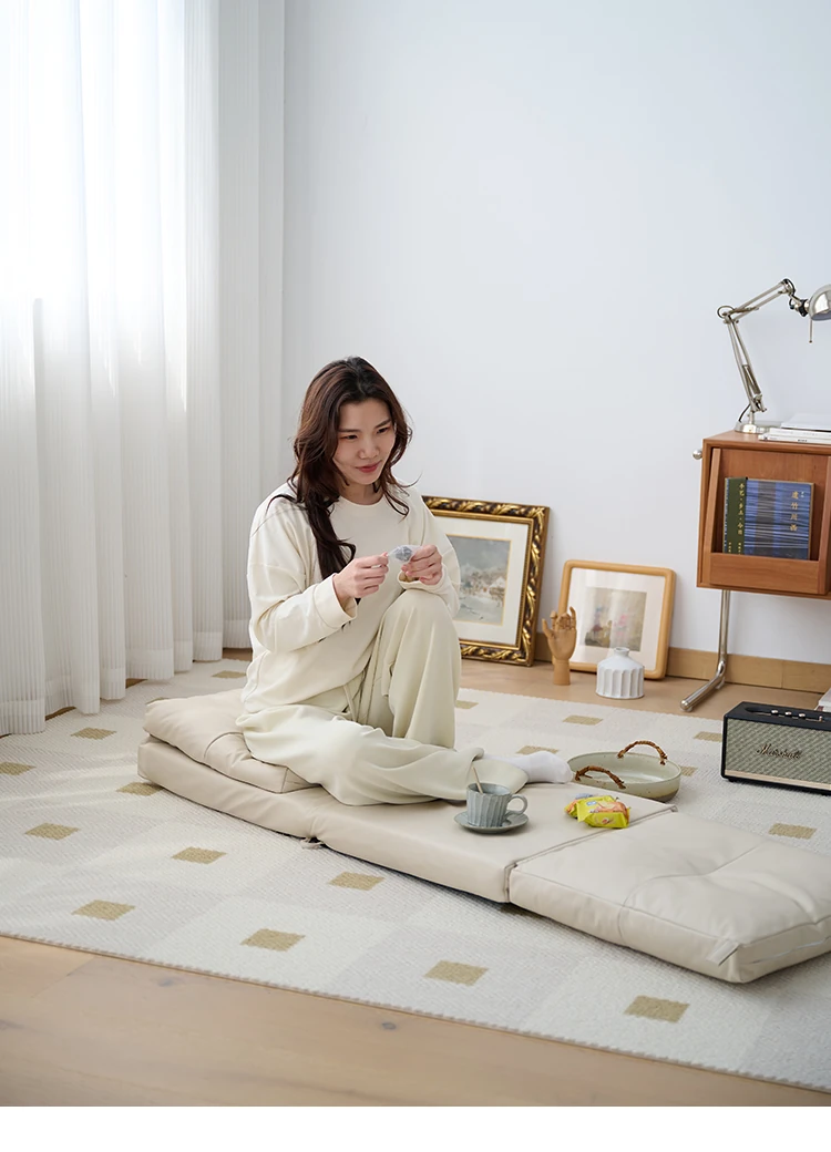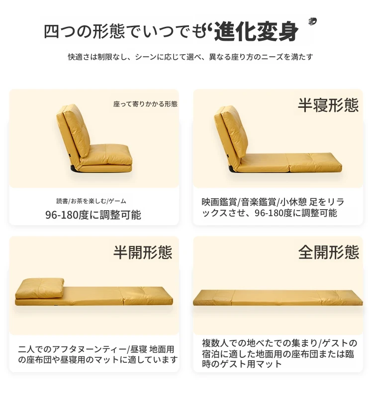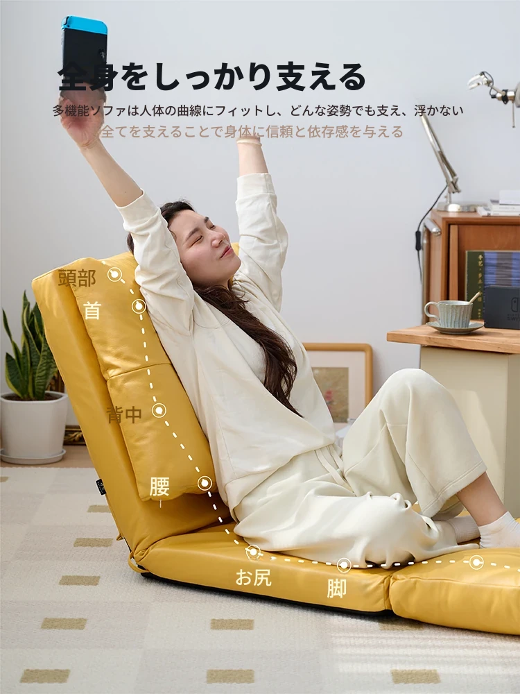 リラックスできる!折りたたみソファ・タタミスタイルバックレストチェア、窓辺のクッションとしても使える一人用ソファベッド。和風バルコニーや寝室にぴったり!