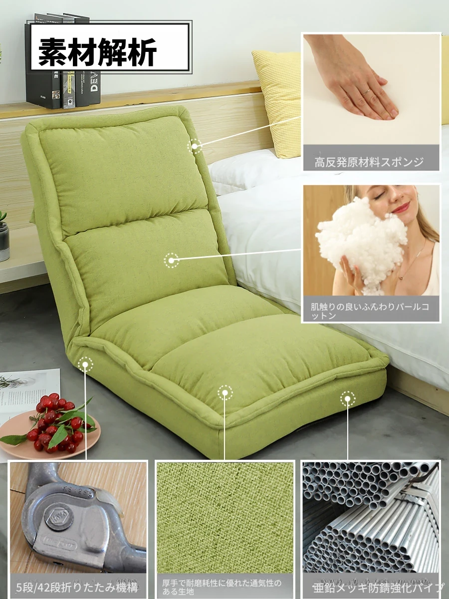 折りたたみ式リラックスソファー - 窓辺や畳のスタイルに最適!寝室やバルコニー、子供の読書タイムにぴったりの背もたれ付き椅子。コンパクトで持ち運びも簡単、心地よい座り心地をお楽しみください!
