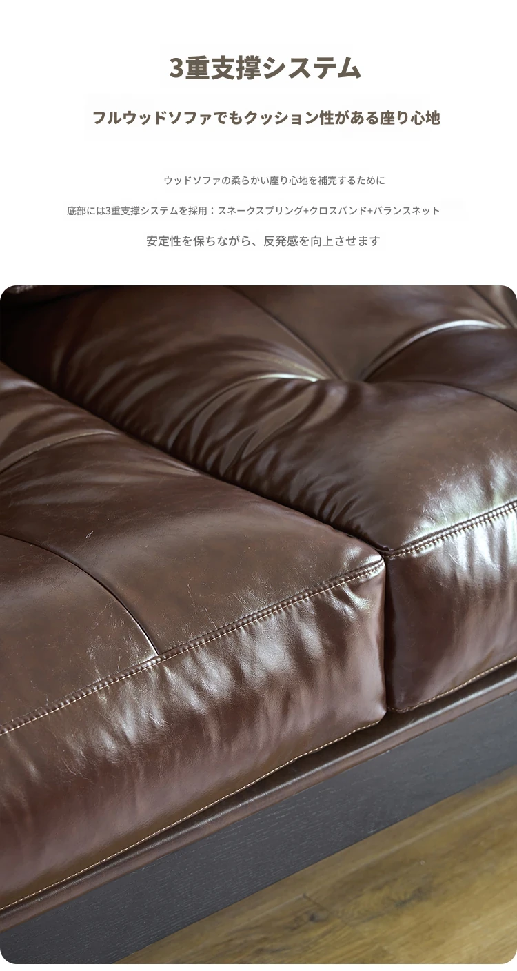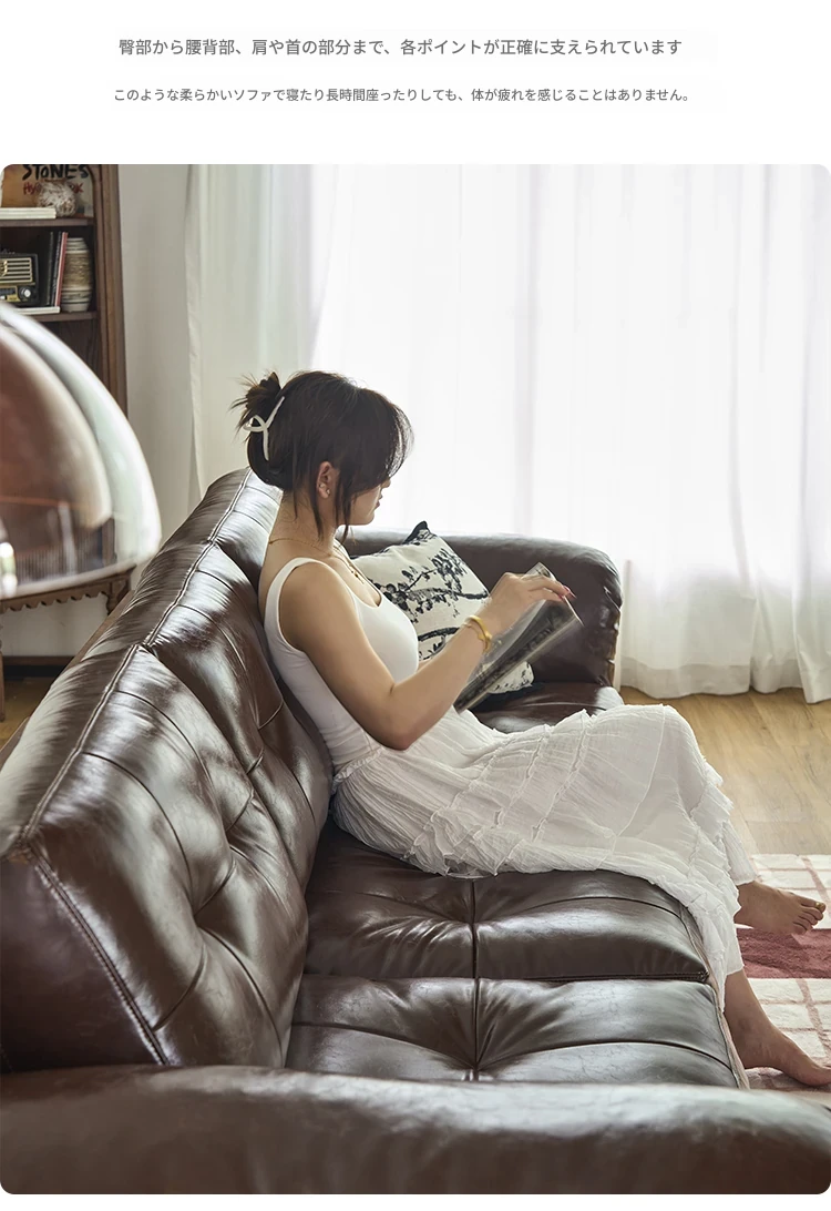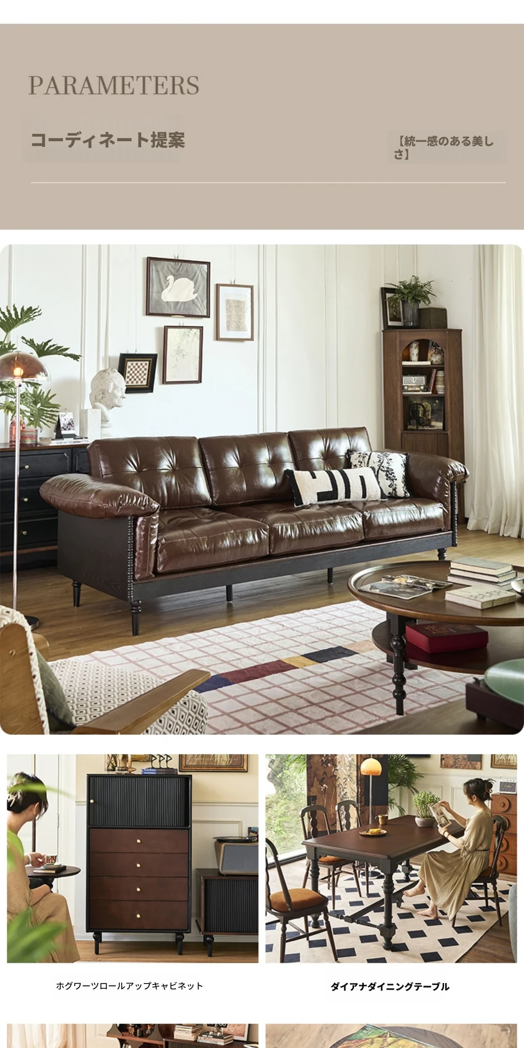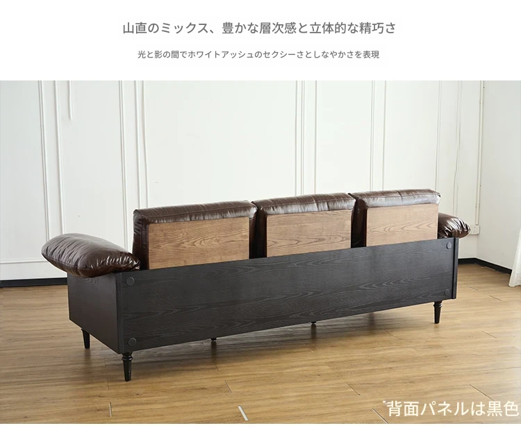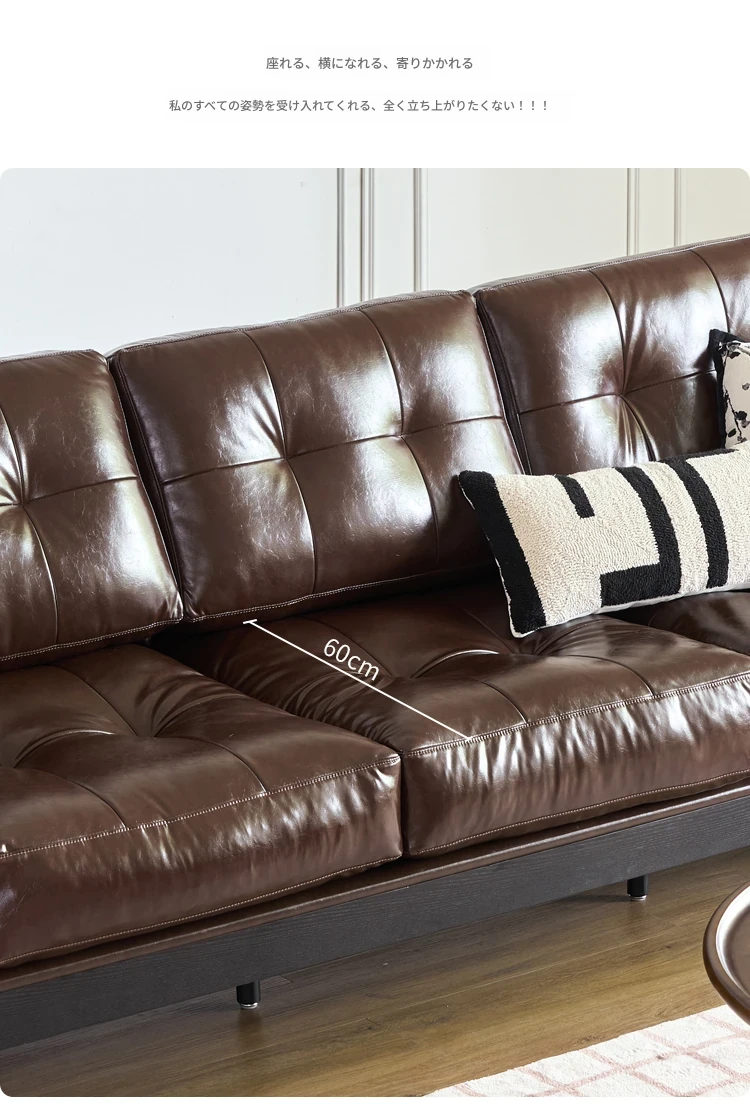 フランス風レトロ無垢材本革ソファ|和風ミニマルデザイン|ブラックで高級感漂う小型住宅向けリビング家具|おしゃれで快適な空間を演出!