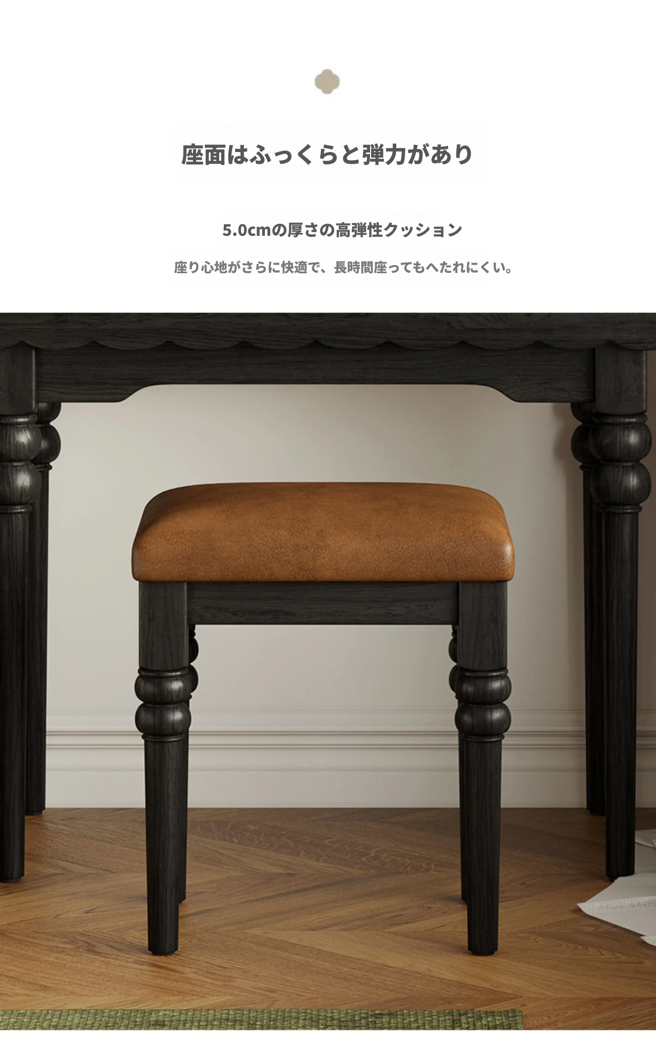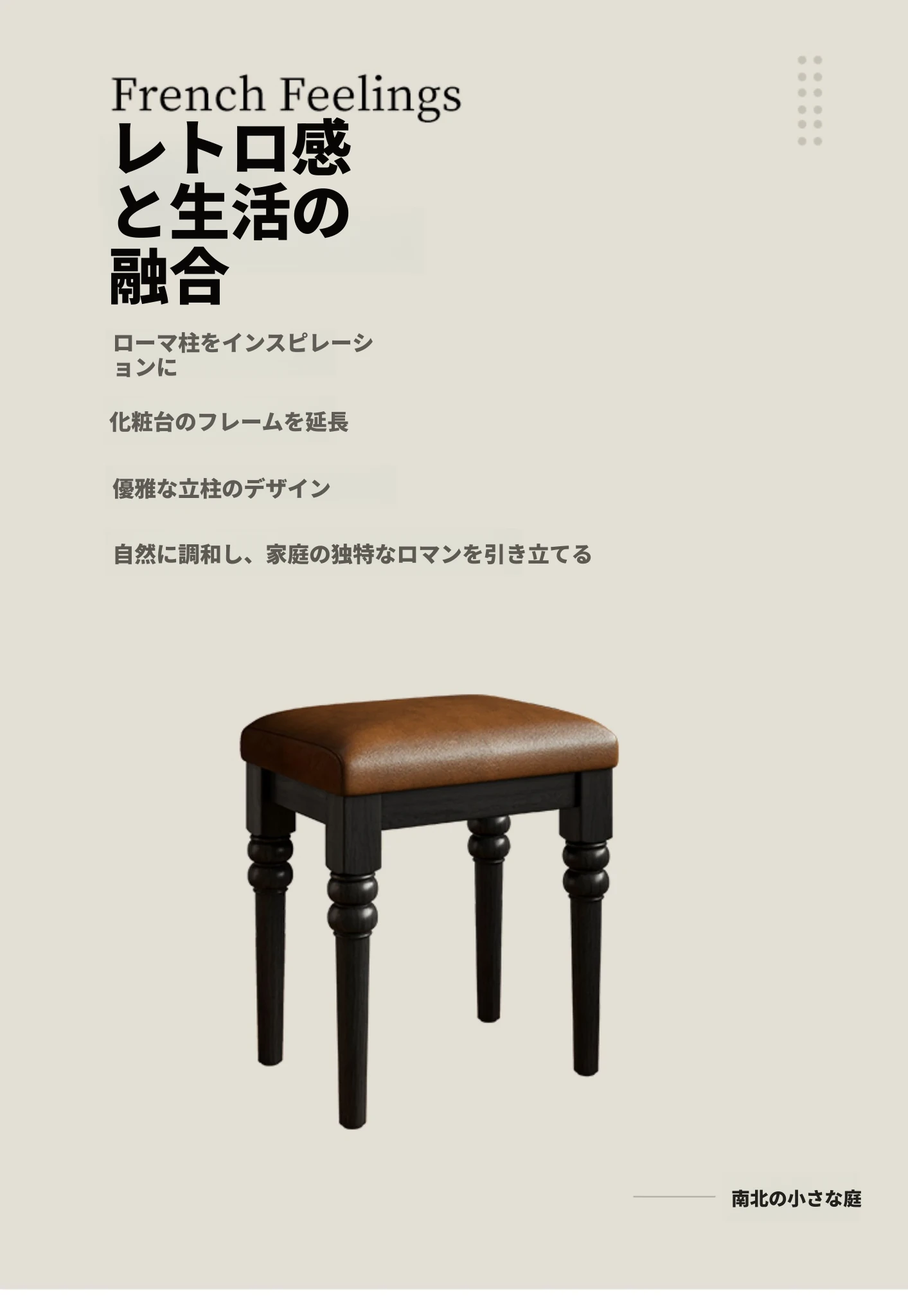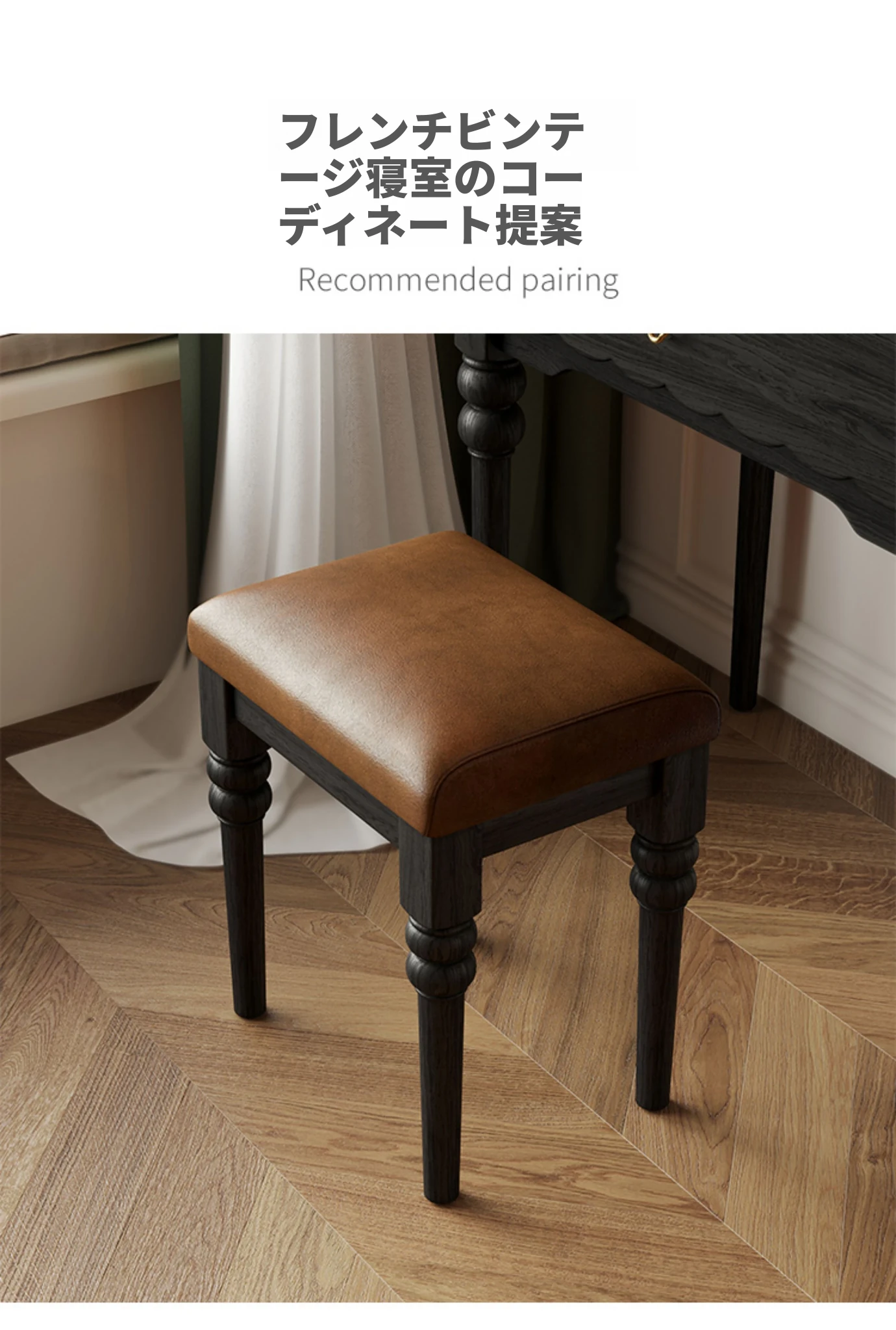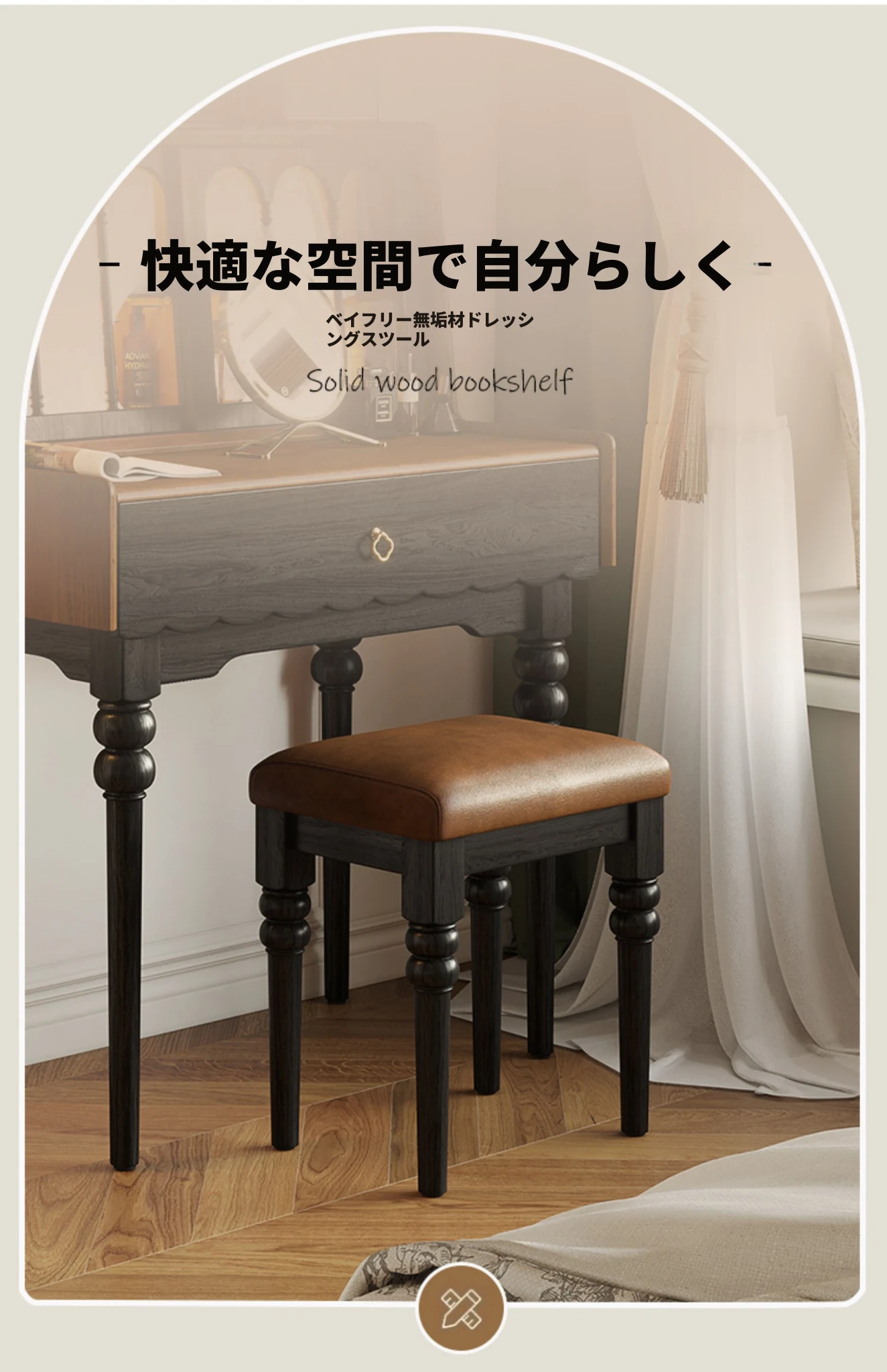 フレンチレトロ風の木製小屋スタイル!実木製の化粧台用スツール、コンパクトな寝室や小さいお部屋にもぴったり。おしゃれな化粧台に最適な、上品なデザインのスツールです。ピアノ用としてもおすすめ!