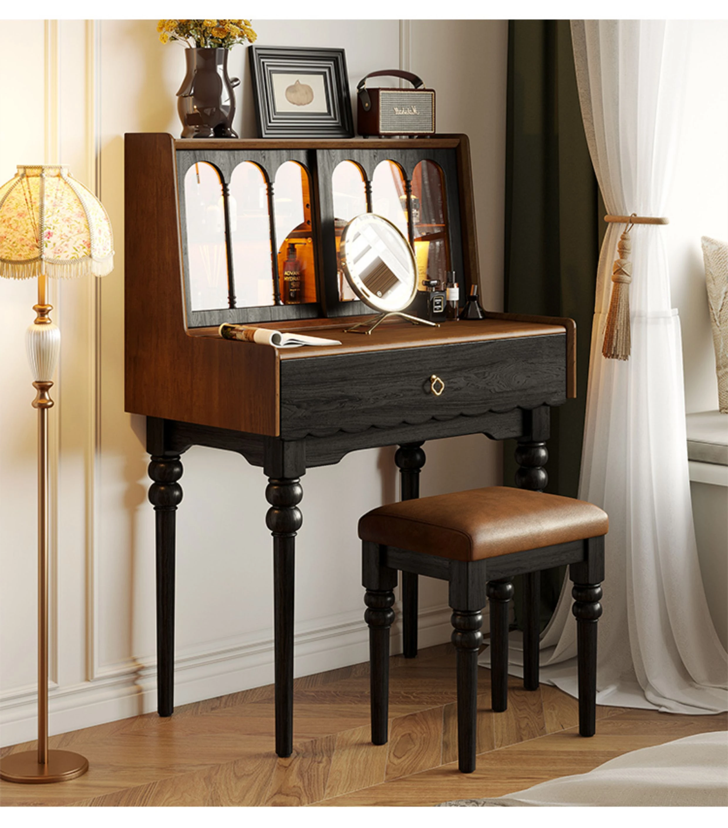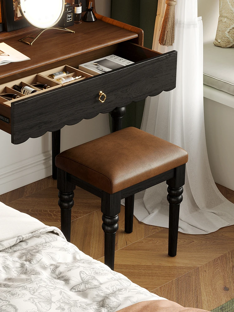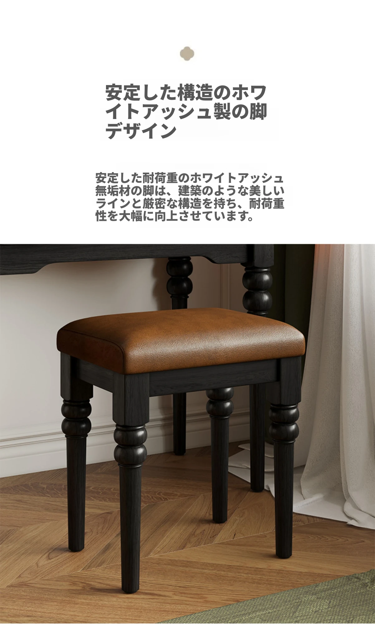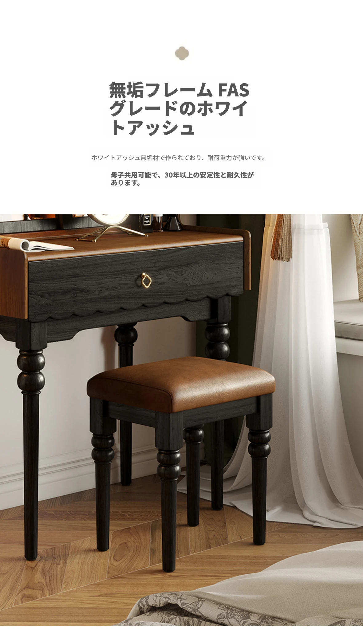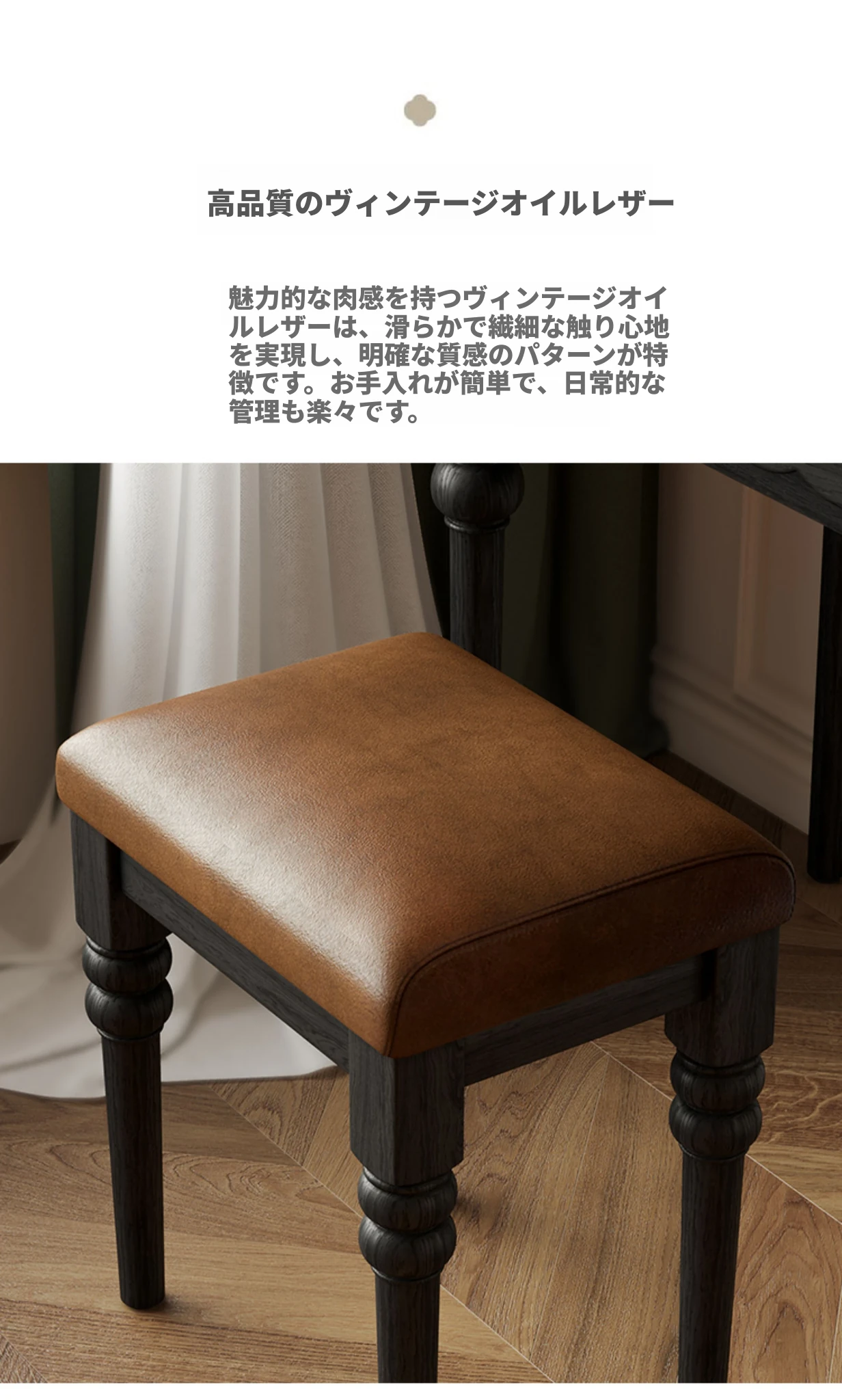 フレンチレトロ風の木製小屋スタイル!実木製の化粧台用スツール、コンパクトな寝室や小さいお部屋にもぴったり。おしゃれな化粧台に最適な、上品なデザインのスツールです。ピアノ用としてもおすすめ!