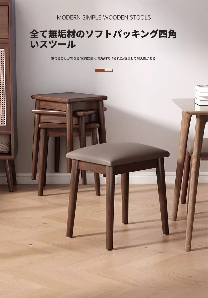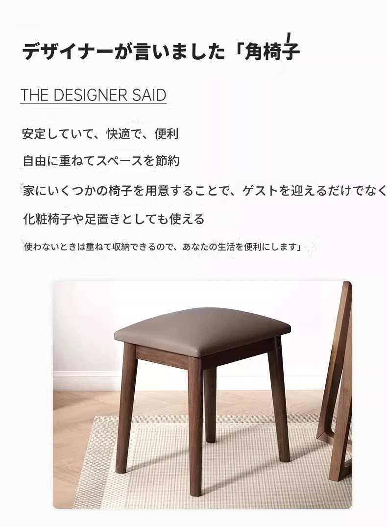 ドイツ製FZY無垢材コスメティックスツール|シンプルでモダンなデザインのドレッシングテーブルチェア|女性の寝室に最適な美しい化粧台スツール