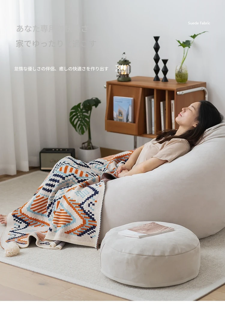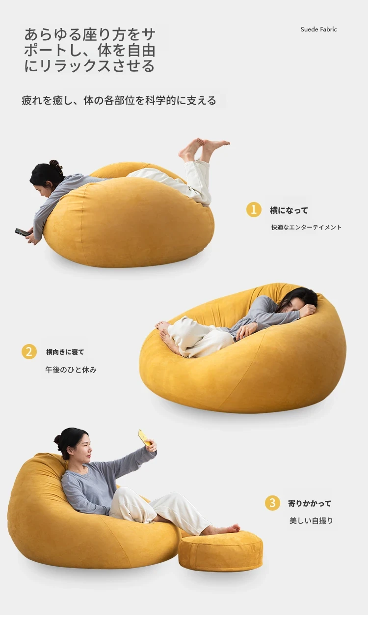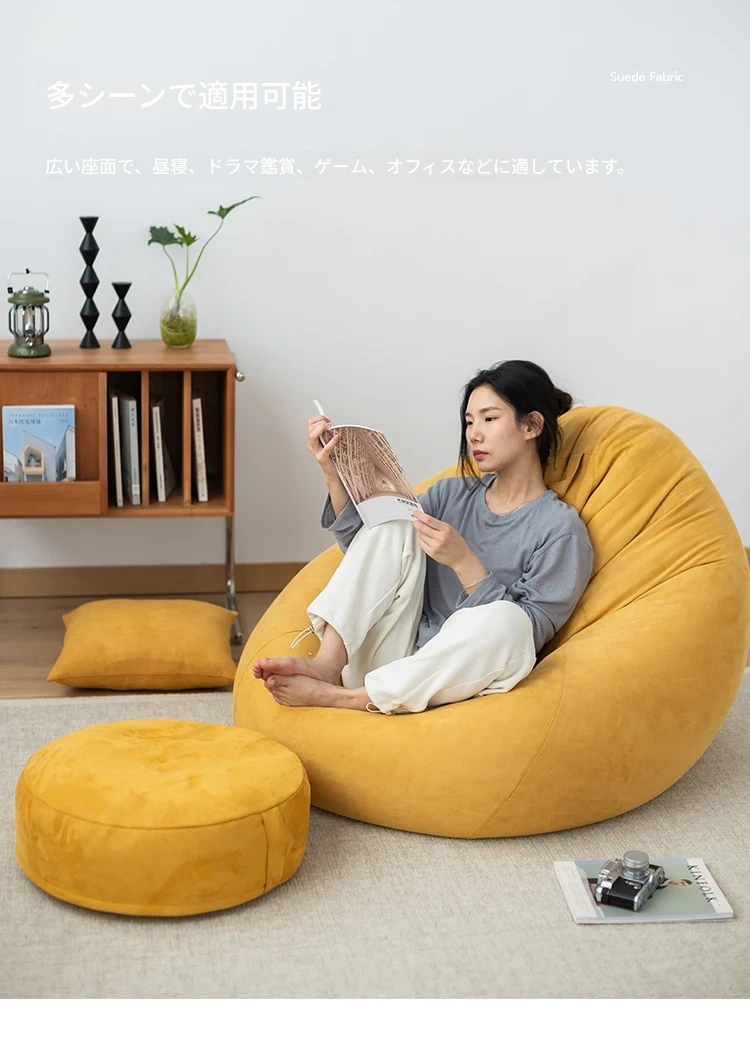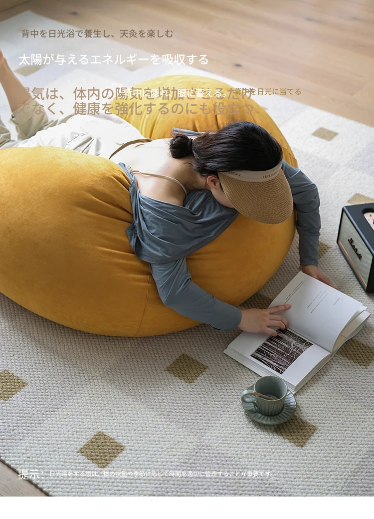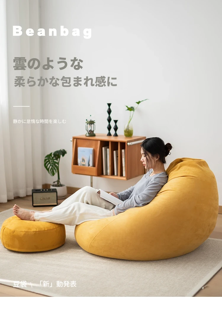 リラックス豆袋ソファ - 一人用、寝室やリビング、バルコニーに最適!小さなスペースでもぴったりフィットする、タタミスタイルの快適なリラックスチェア。あなたのくつろぎタイムをもっと特別に!