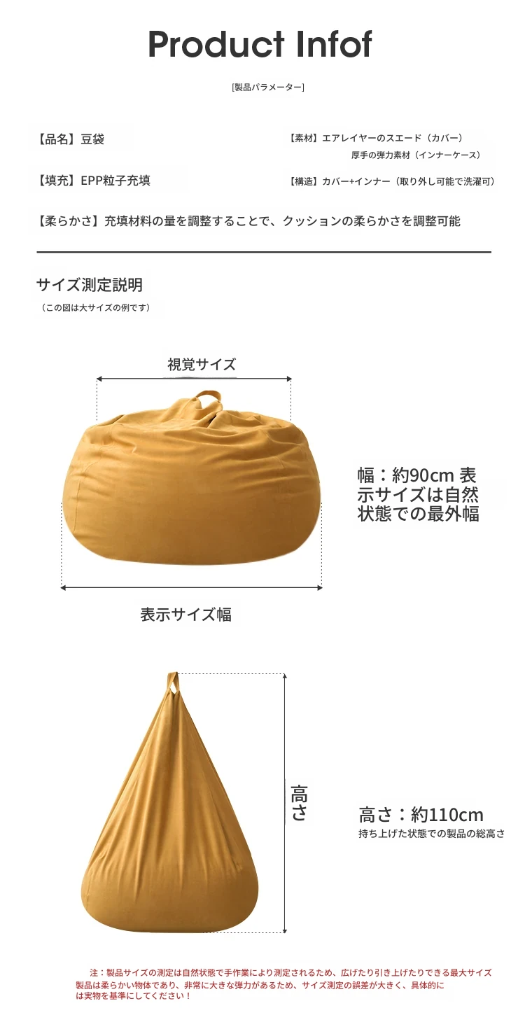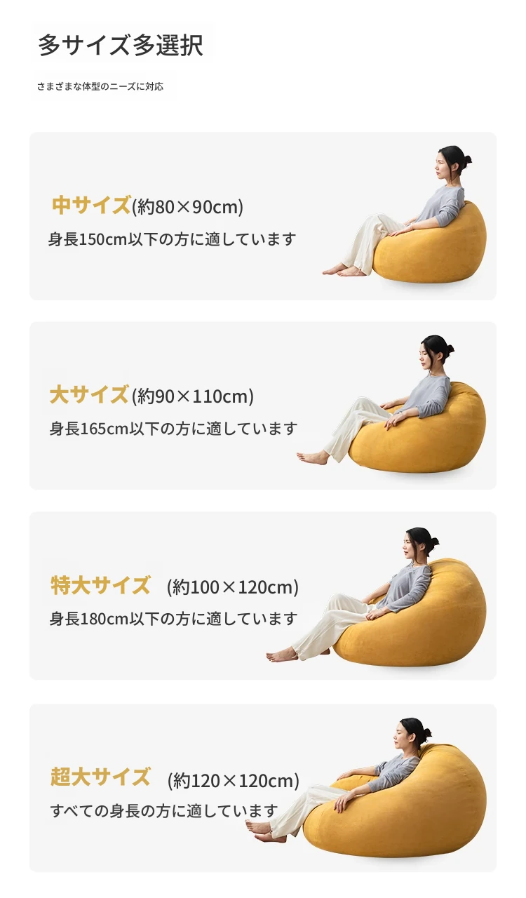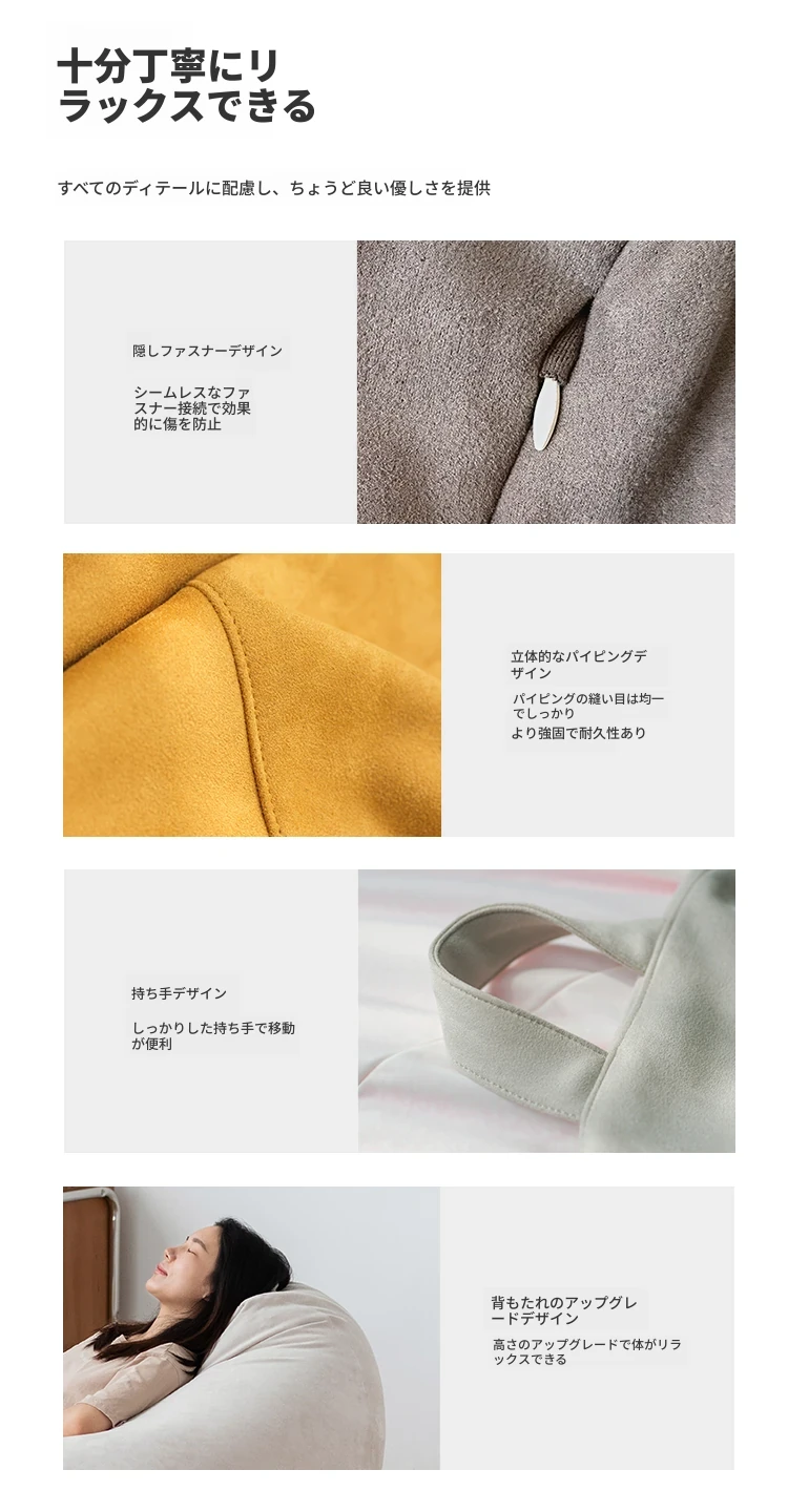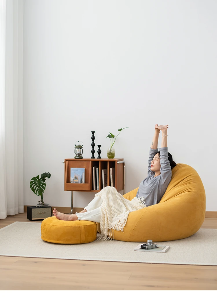 リラックス豆袋ソファ - 一人用、寝室やリビング、バルコニーに最適!小さなスペースでもぴったりフィットする、タタミスタイルの快適なリラックスチェア。あなたのくつろぎタイムをもっと特別に!