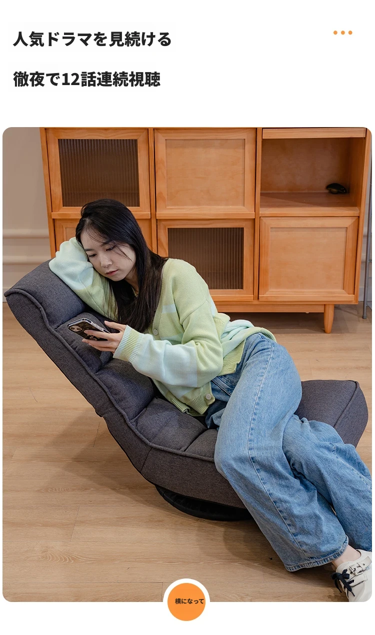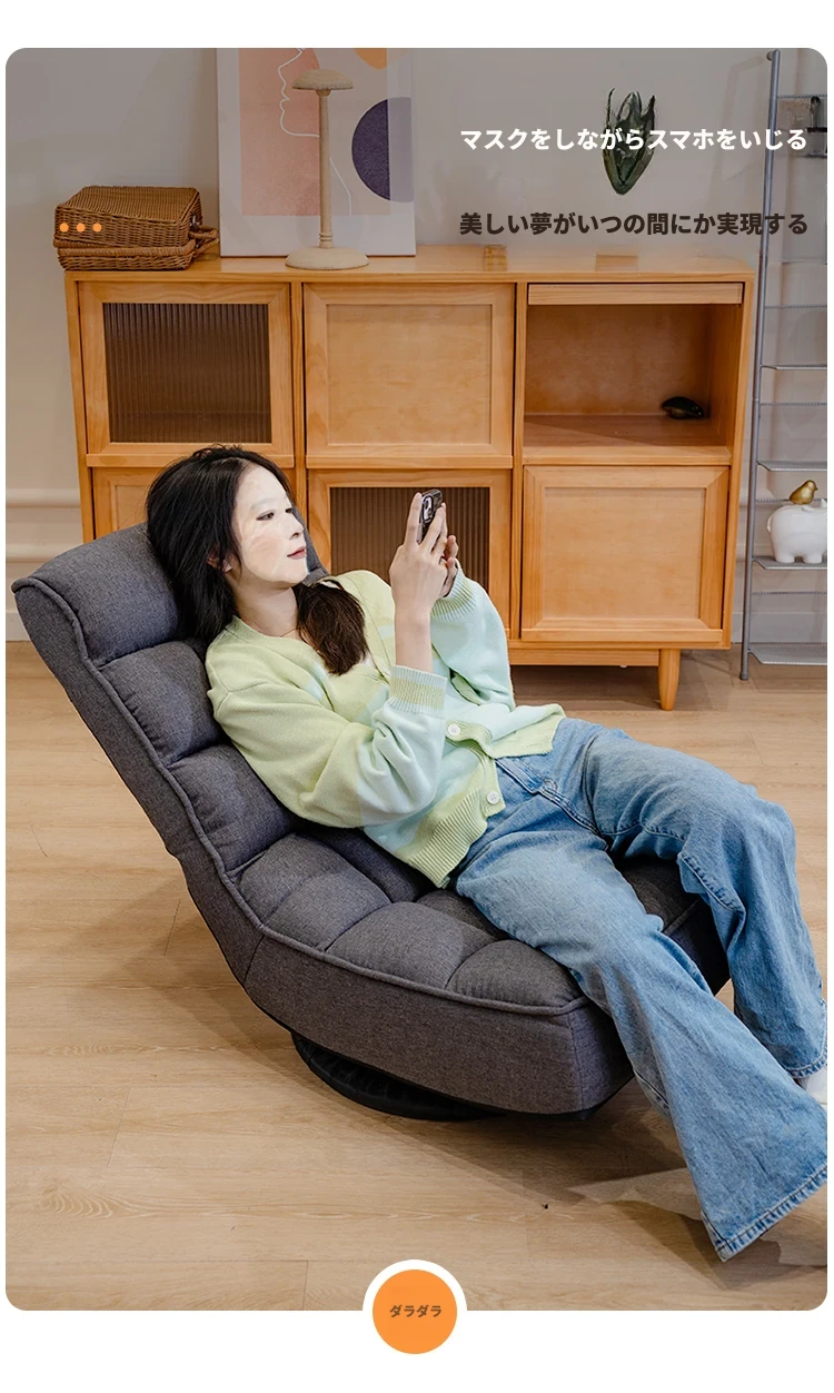 リラックスソファ:寝転んでくつろげる!寮や寝室に最適な背もたれ付きの一人掛け椅子。回転機能付き、バルコニーでも使える折りたたみ小ソファ。快適なひとときをお届けします!