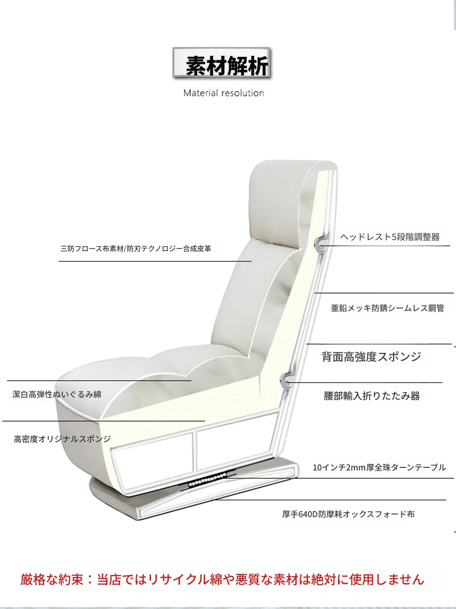 ホワイトの三防フリース布アームレスト付きモデル プレゼント:布用ドライクリーニング剤