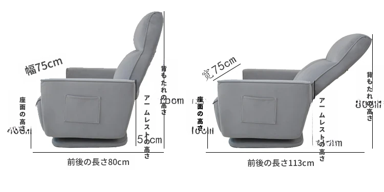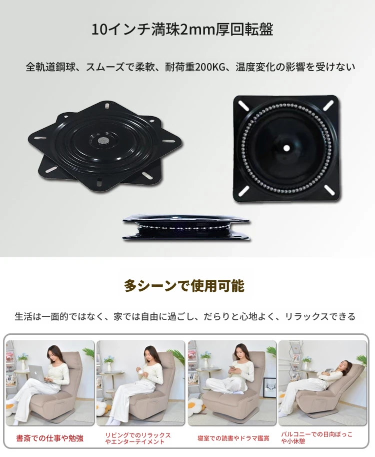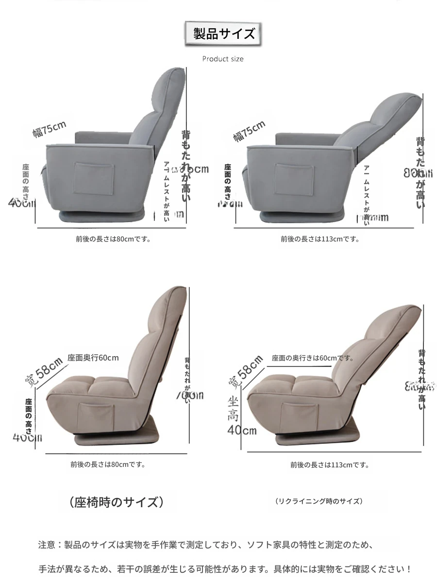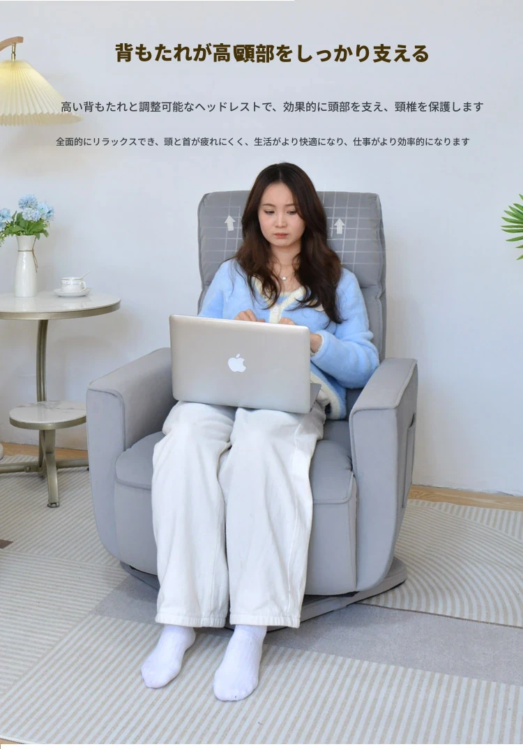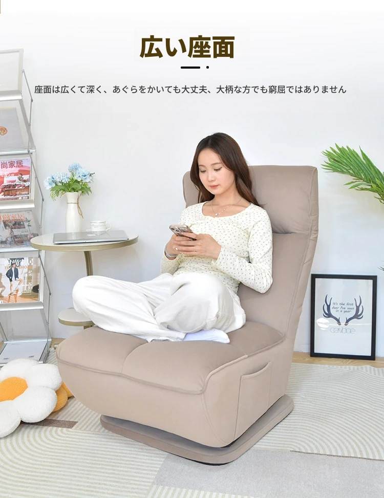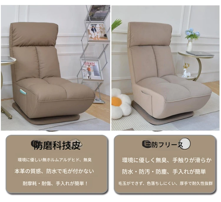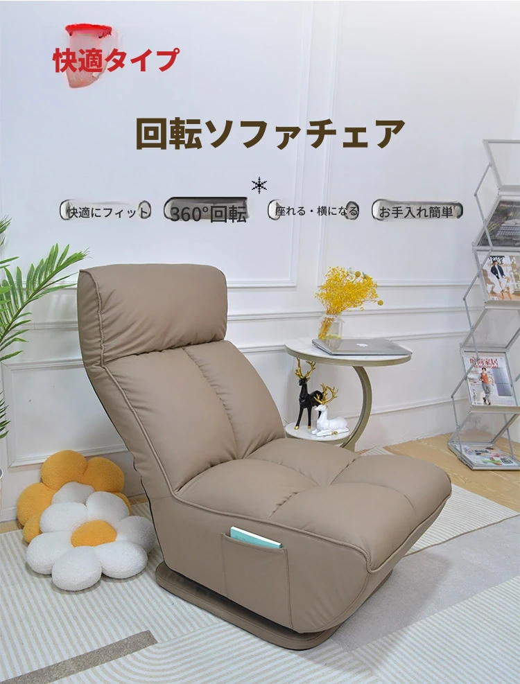 リラックスソファ 日本式畳 一人用 小型 寝室やバルコニーに最適 本を読むのにぴったり!背もたれ回転機能付き コンピュータ用のリクライニングチェア
