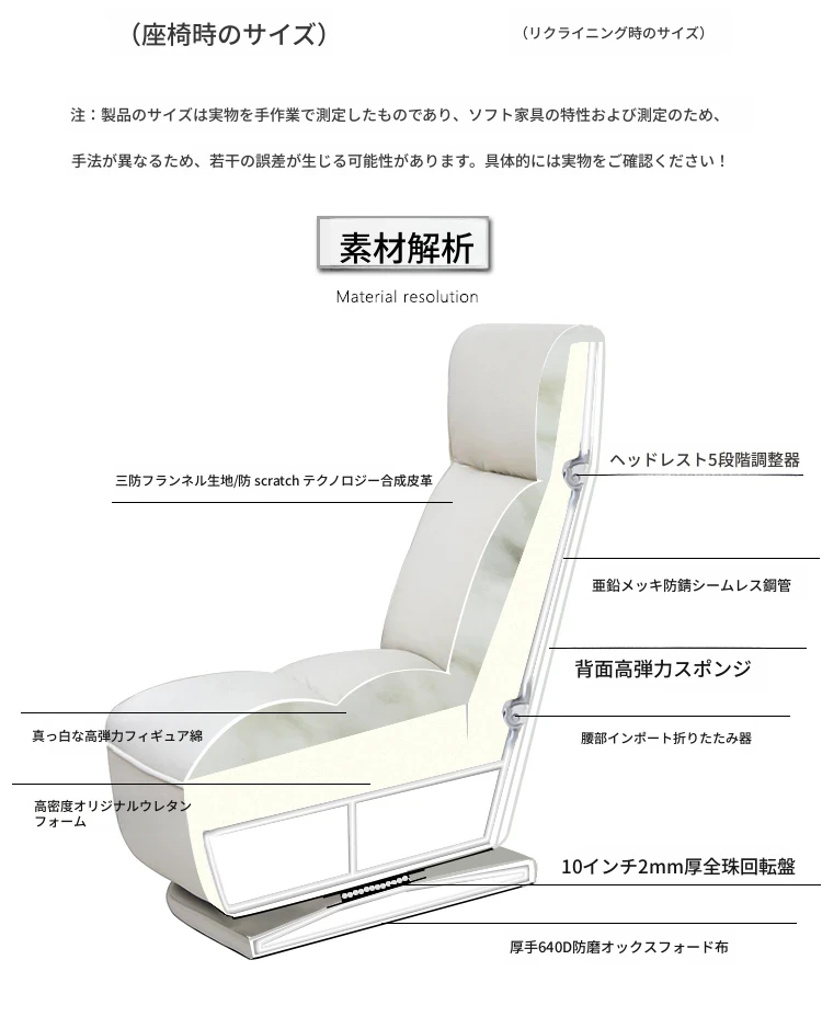 ホワイトのテクノロジー革アームレスト付きモデル プレゼント:革用クリーナー