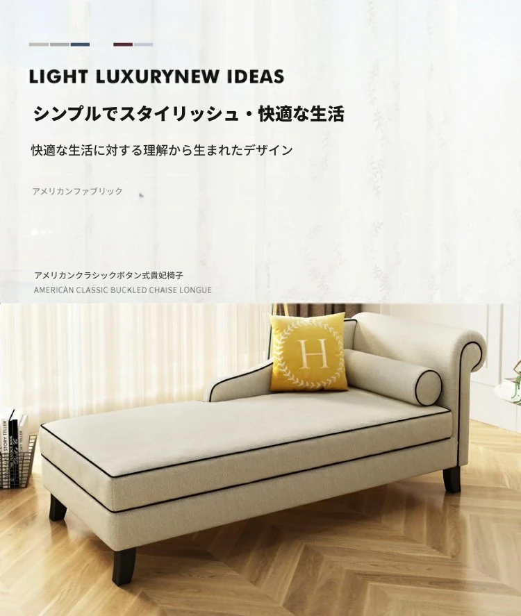 現代アメリカンスタイルのファブリックカウチ、コンパクトな一人掛けソファ!寝室やバルコニー、ホテルや民宿に最適な貴族のようなリラックス空間を演出します。あなたのライフスタイルにぴったりの一品です!