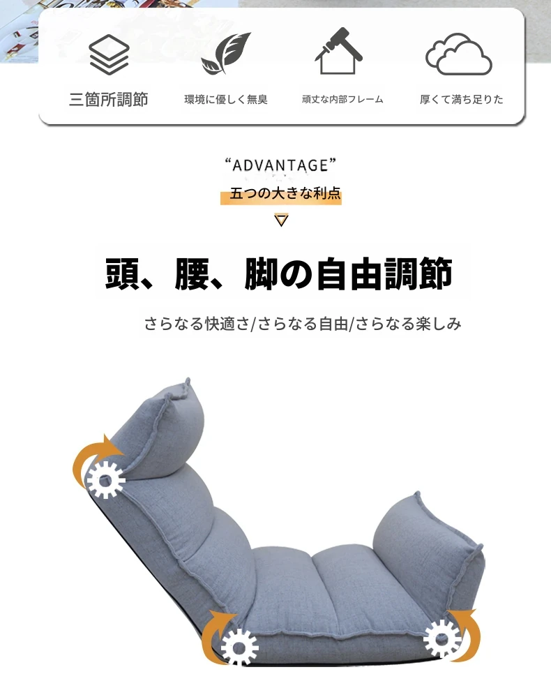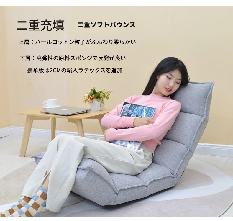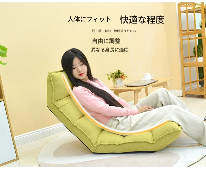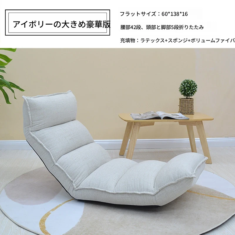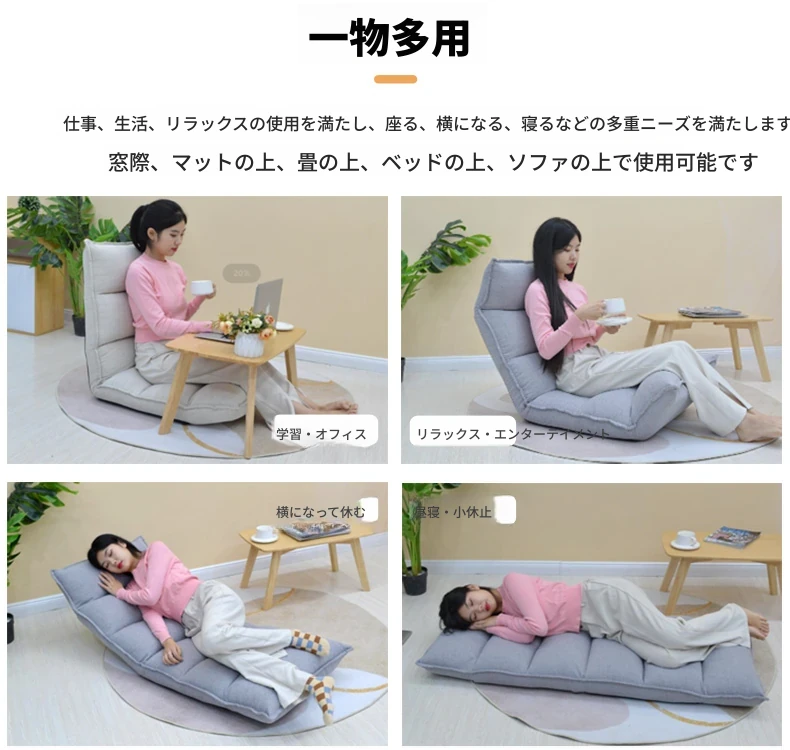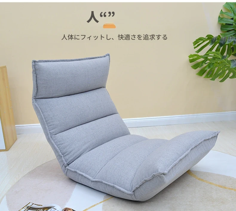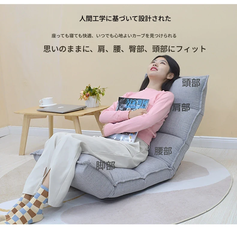 シンプルでモダンな大人向けリラックスソファ!折りたたみ式で、タタミやベランダ、窓際にもぴったり。脚無しデザインで、読書やパソコン作業も快適に楽しめます。あなたのライフスタイルに最適な一品!