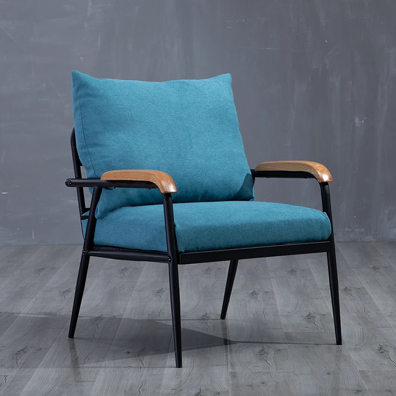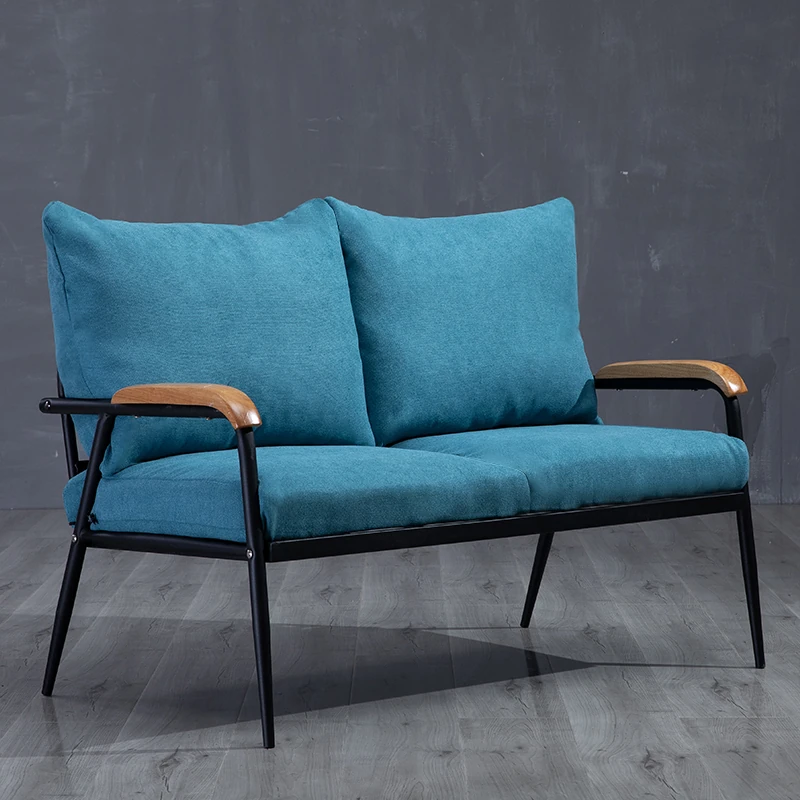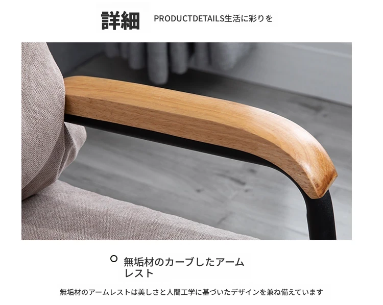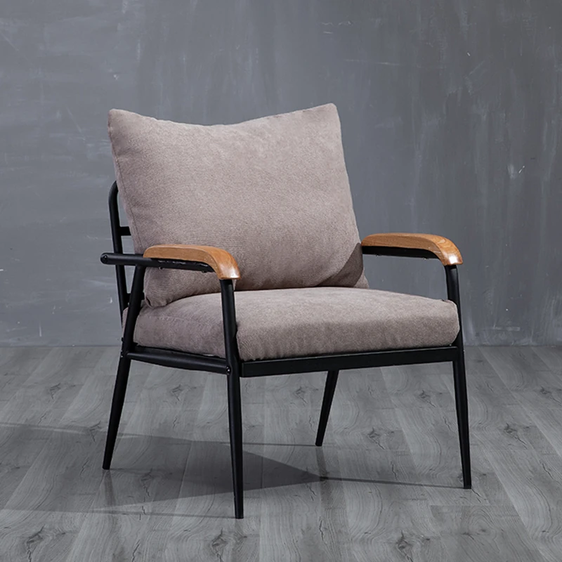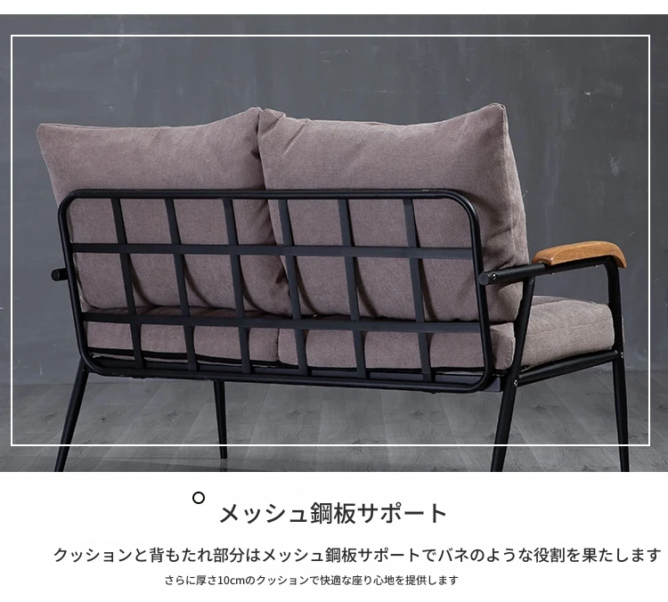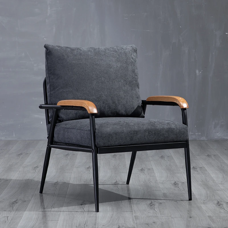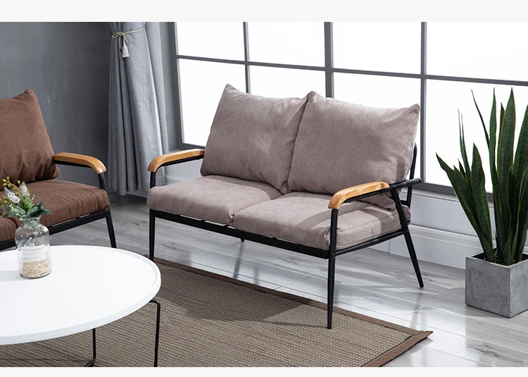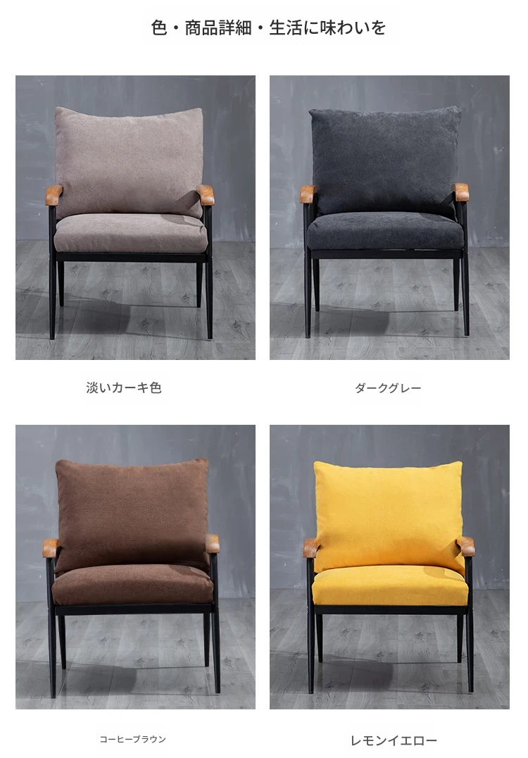 モダンシンプルな日本風ファブリックソファチェア - 小さなリビングやバルコニーに最適!天然木製とアイアンのコンビネーションで、スタイリッシュなインテリアを演出。リラックスしたひとときをお楽しみください。