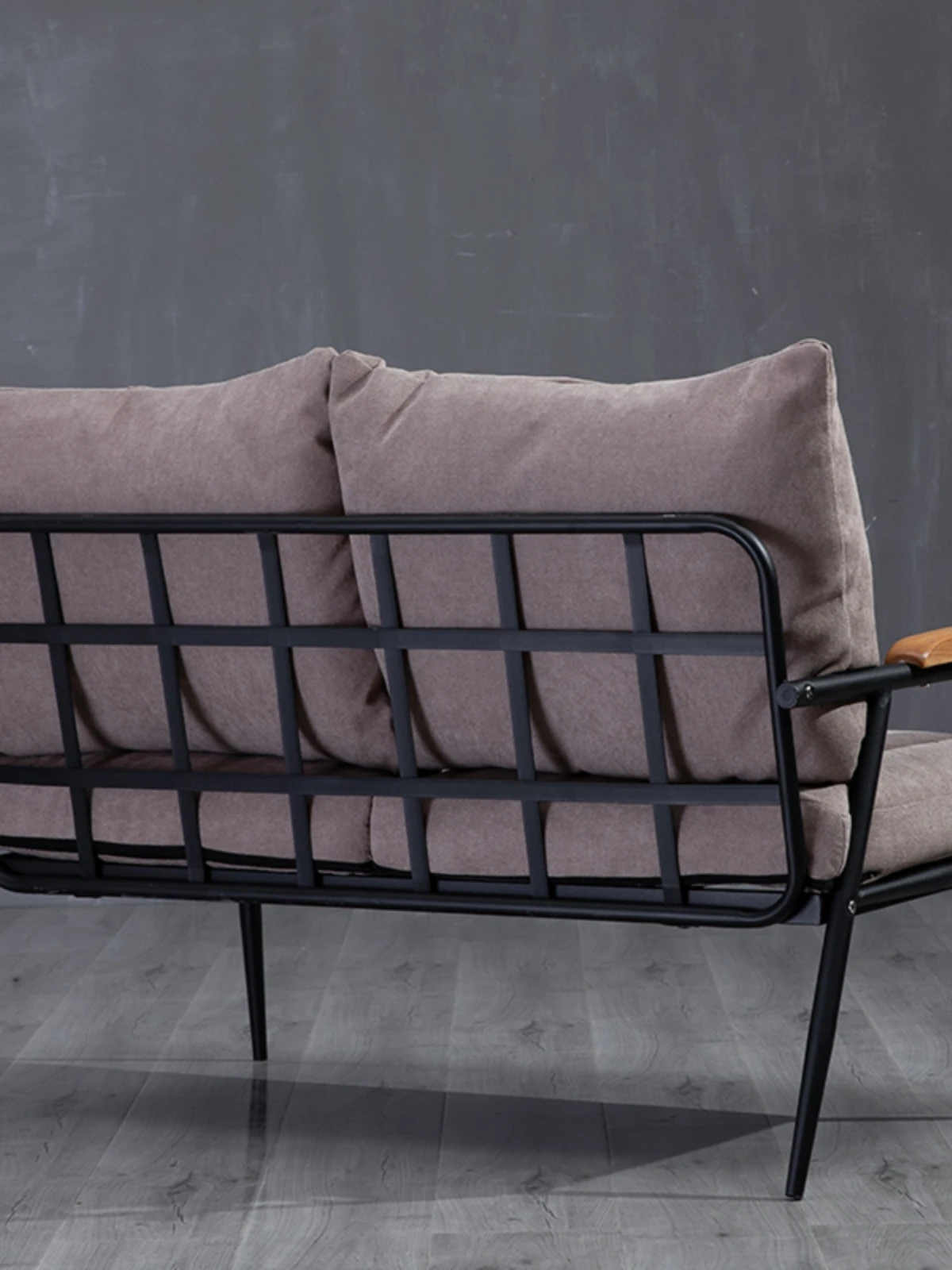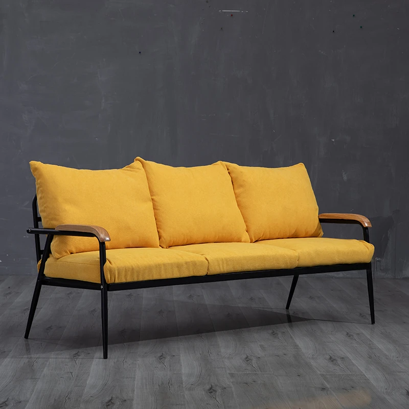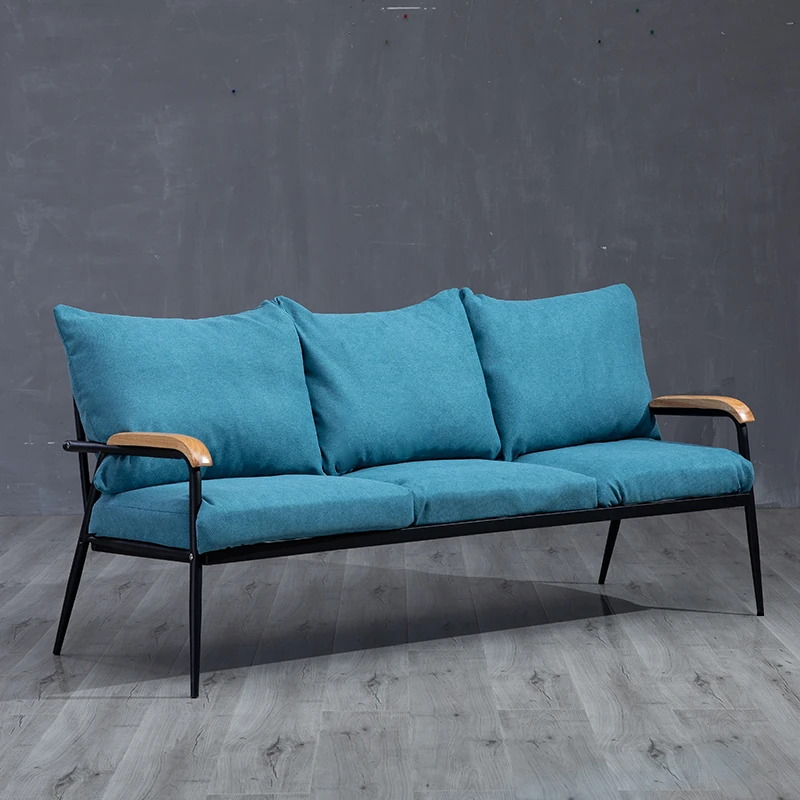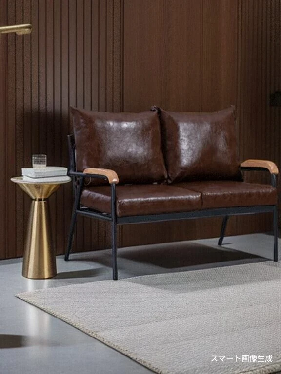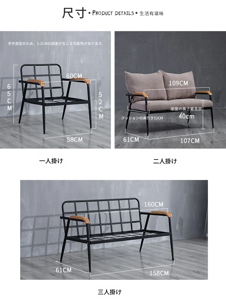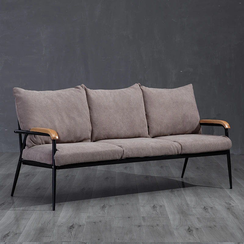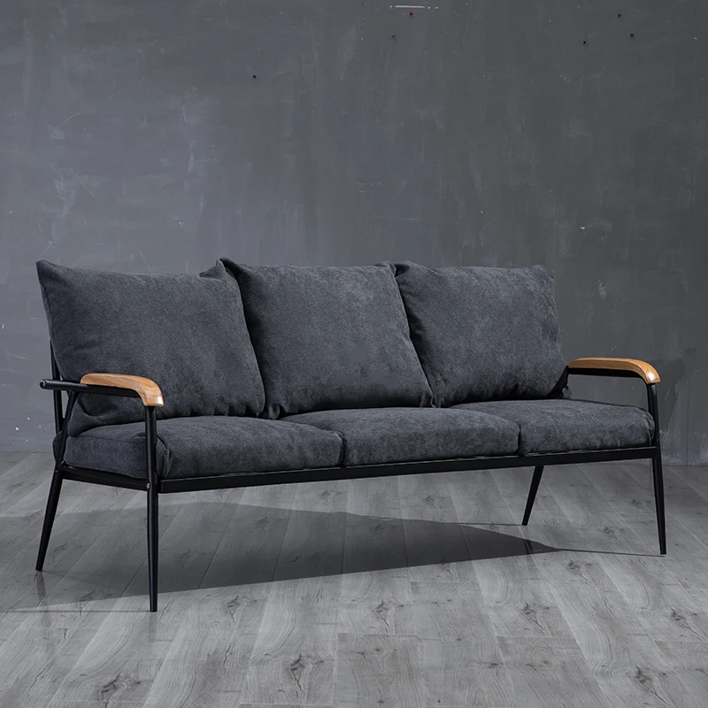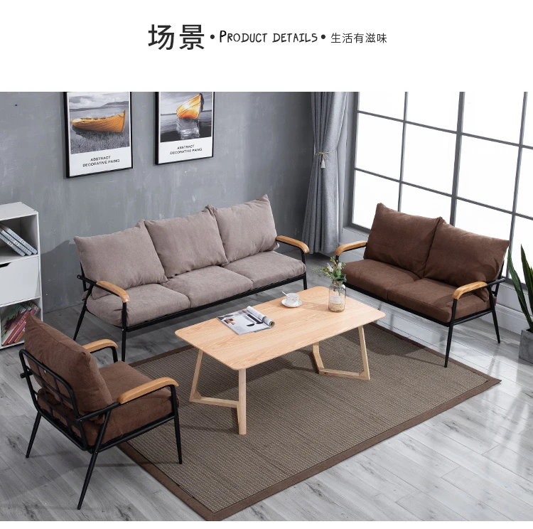 モダンシンプルな日本風ファブリックソファチェア - 小さなリビングやバルコニーに最適!天然木製とアイアンのコンビネーションで、スタイリッシュなインテリアを演出。リラックスしたひとときをお楽しみください。