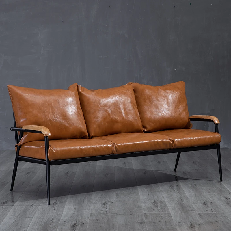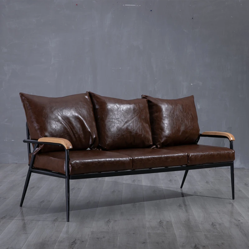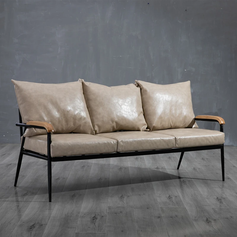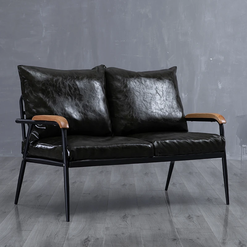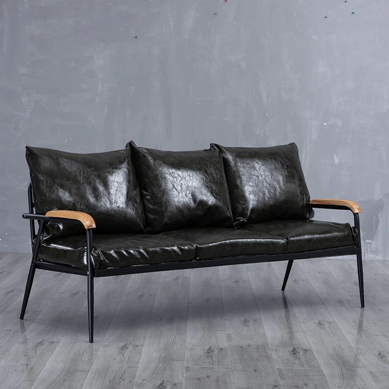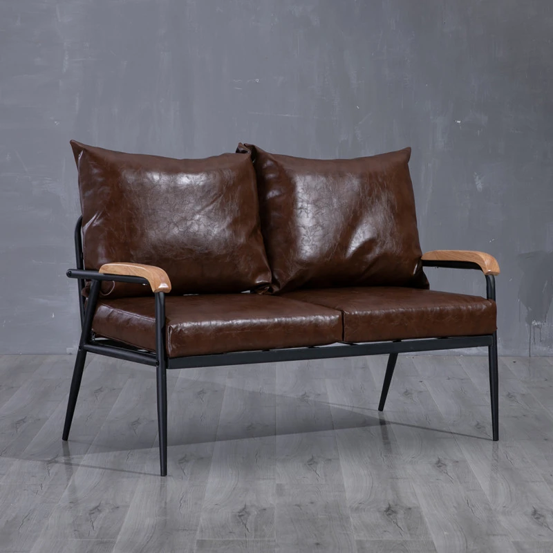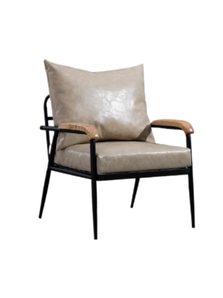 モダンシンプルな日本風ファブリックソファチェア - 小さなリビングやバルコニーに最適!天然木製とアイアンのコンビネーションで、スタイリッシュなインテリアを演出。リラックスしたひとときをお楽しみください。